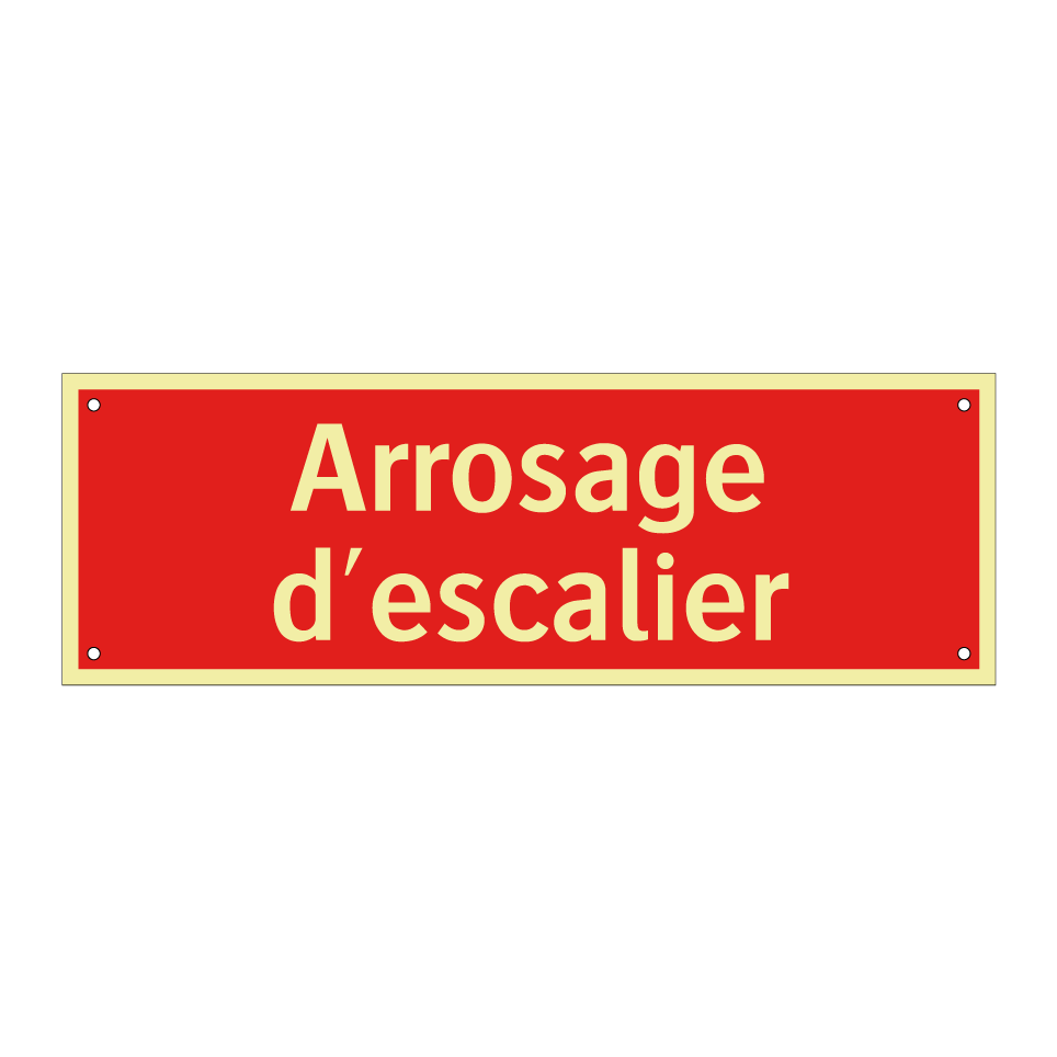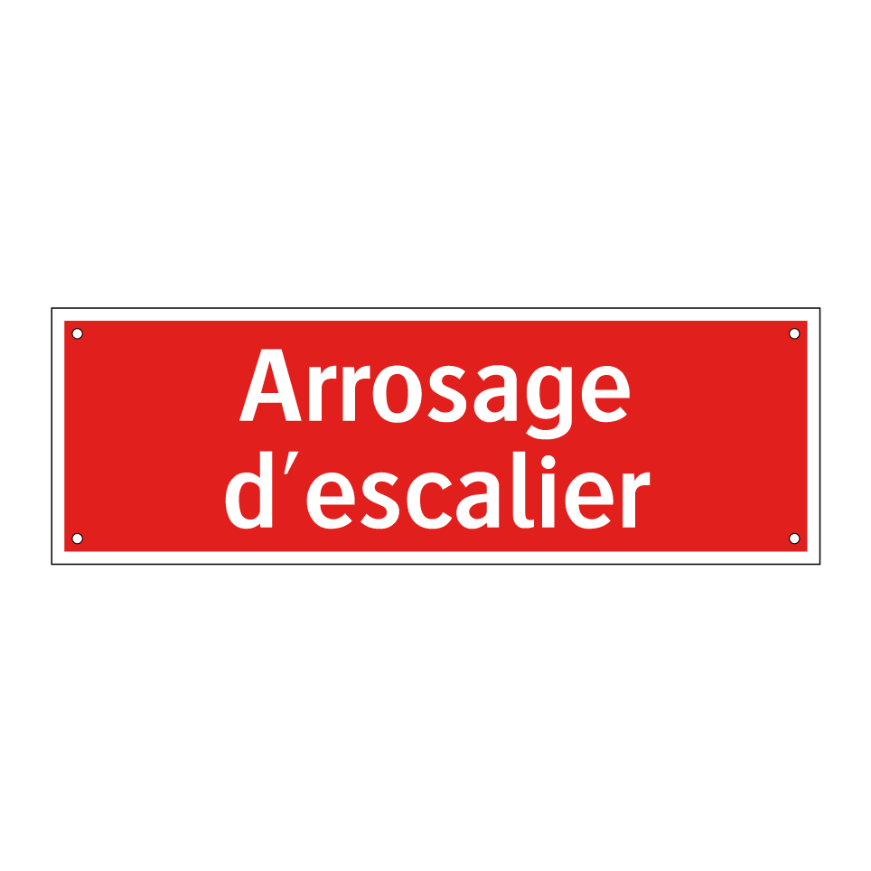 Panneau de signalisation incendie avec le texte Arrosage d'escalier