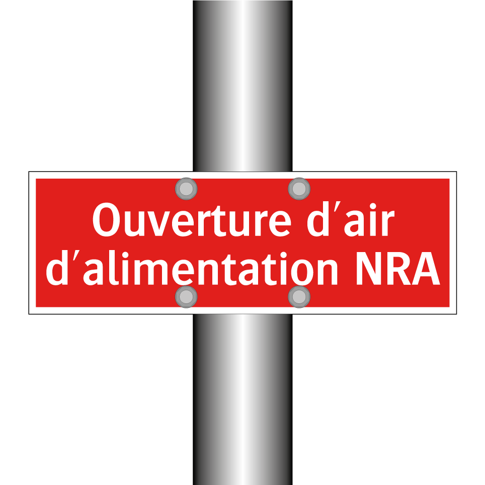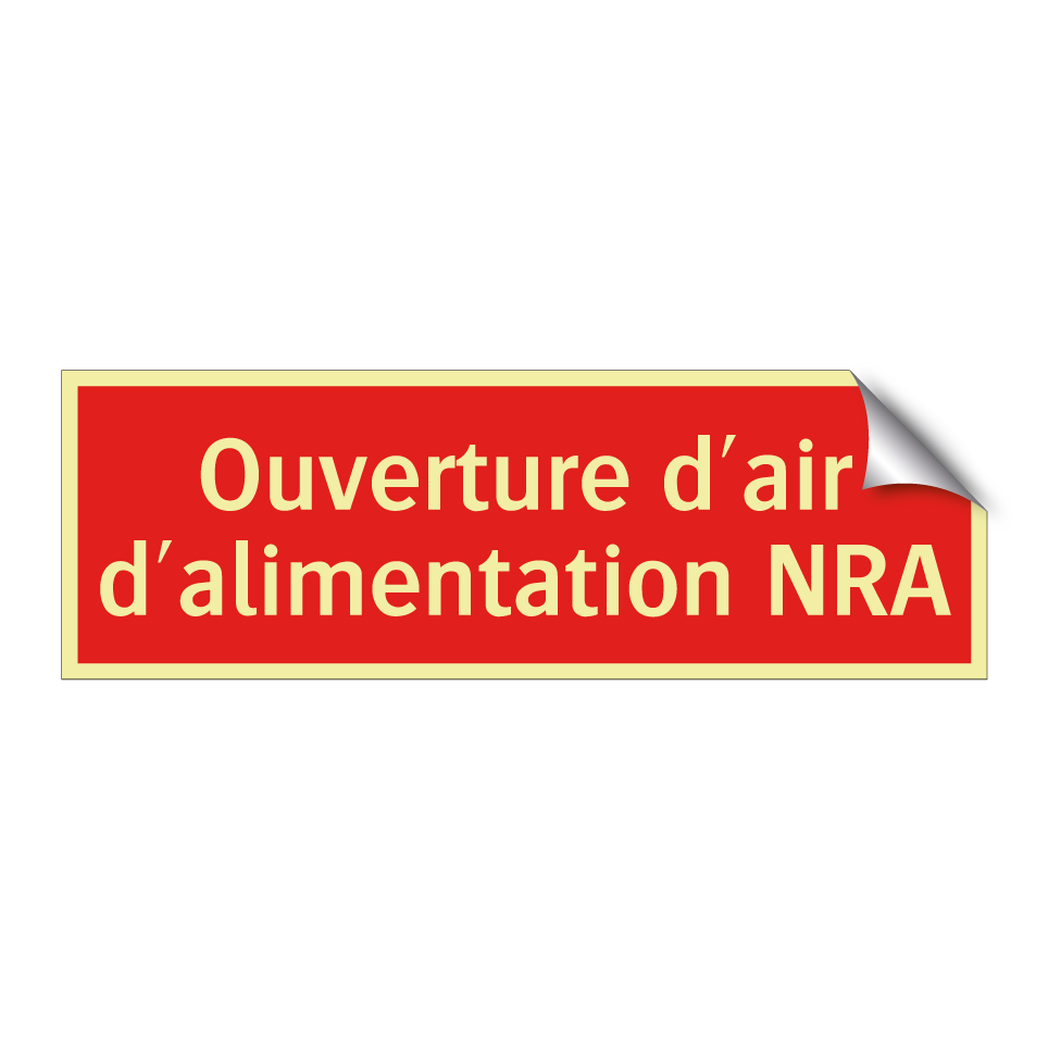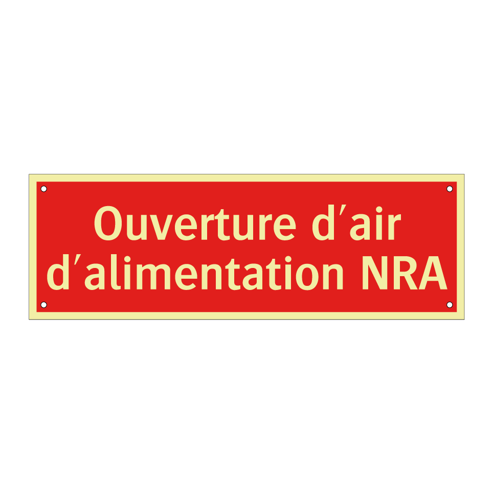 Panneau de signalisation incendie avec le texte Ouverture d'air d'alimentation NRA