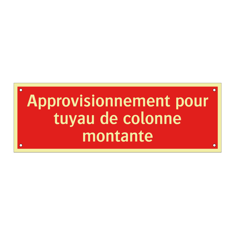 Panneau de signalisation incendie avec le texte Approvisionnement pour tuyau de colonne montante