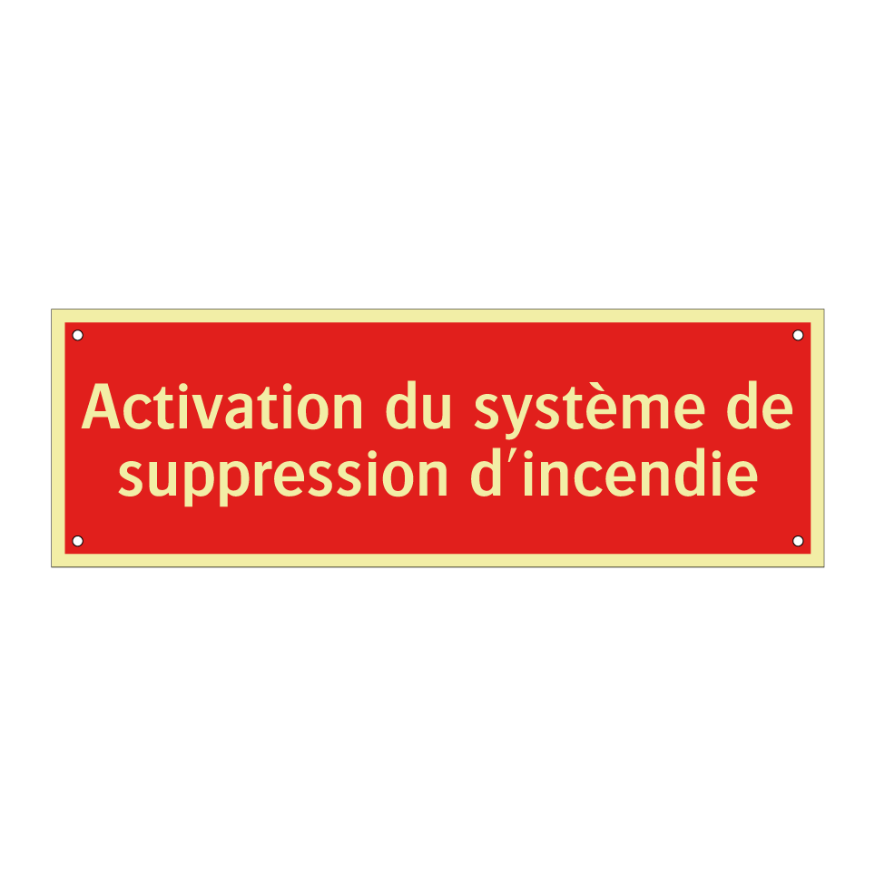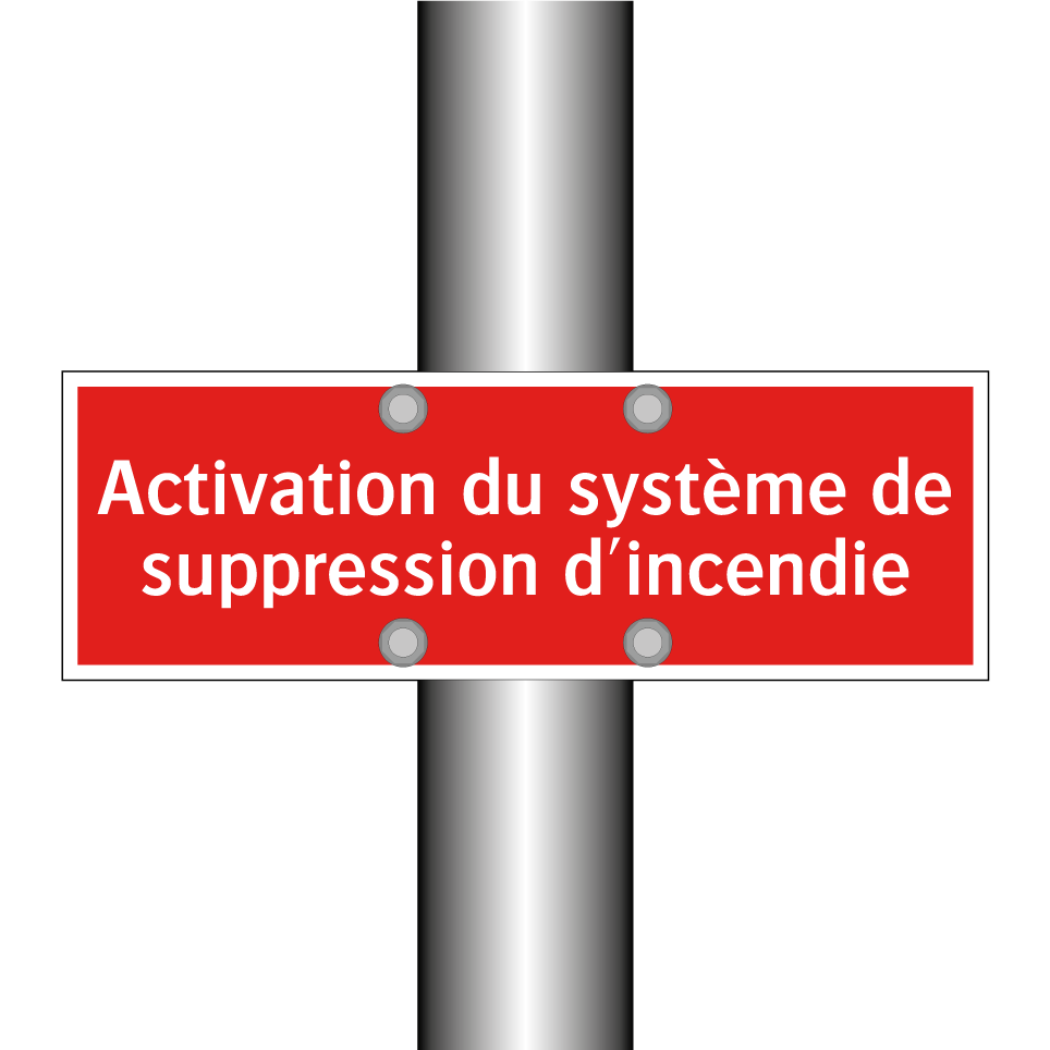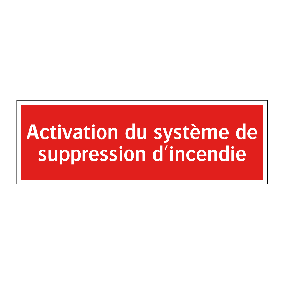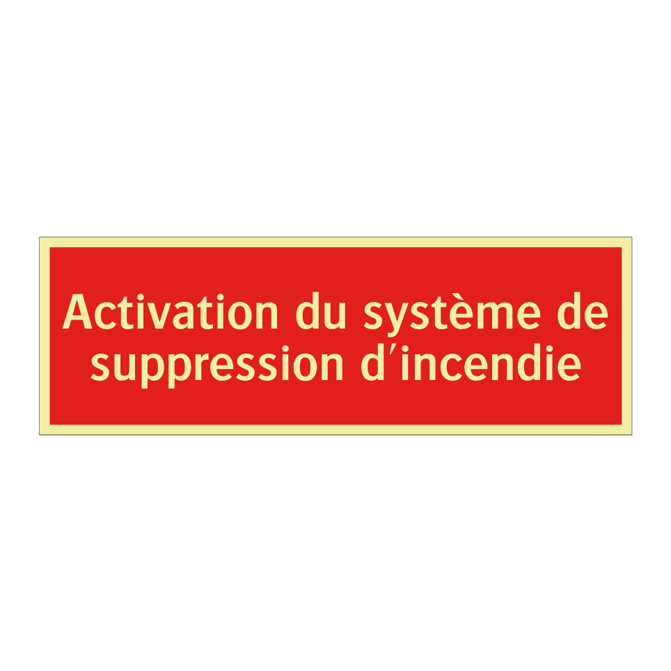 Panneau de signalisation incendie avec le texte Activation du système de suppression d'incendie