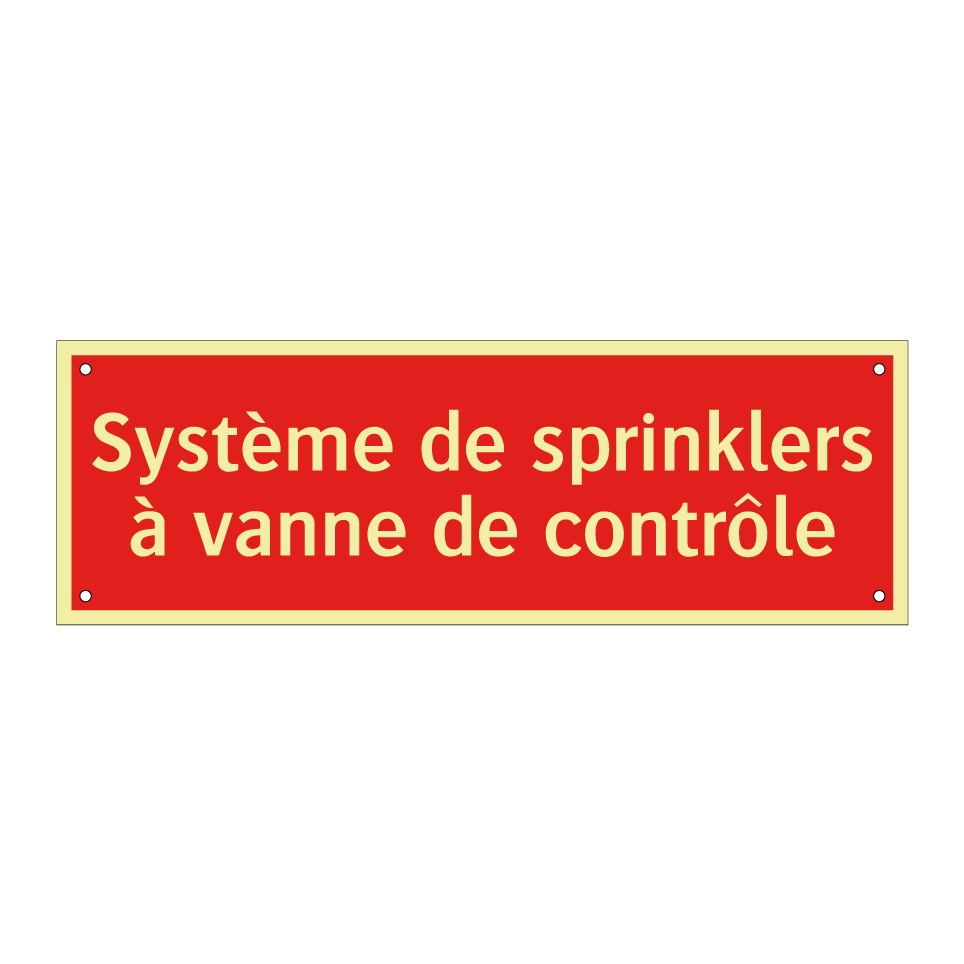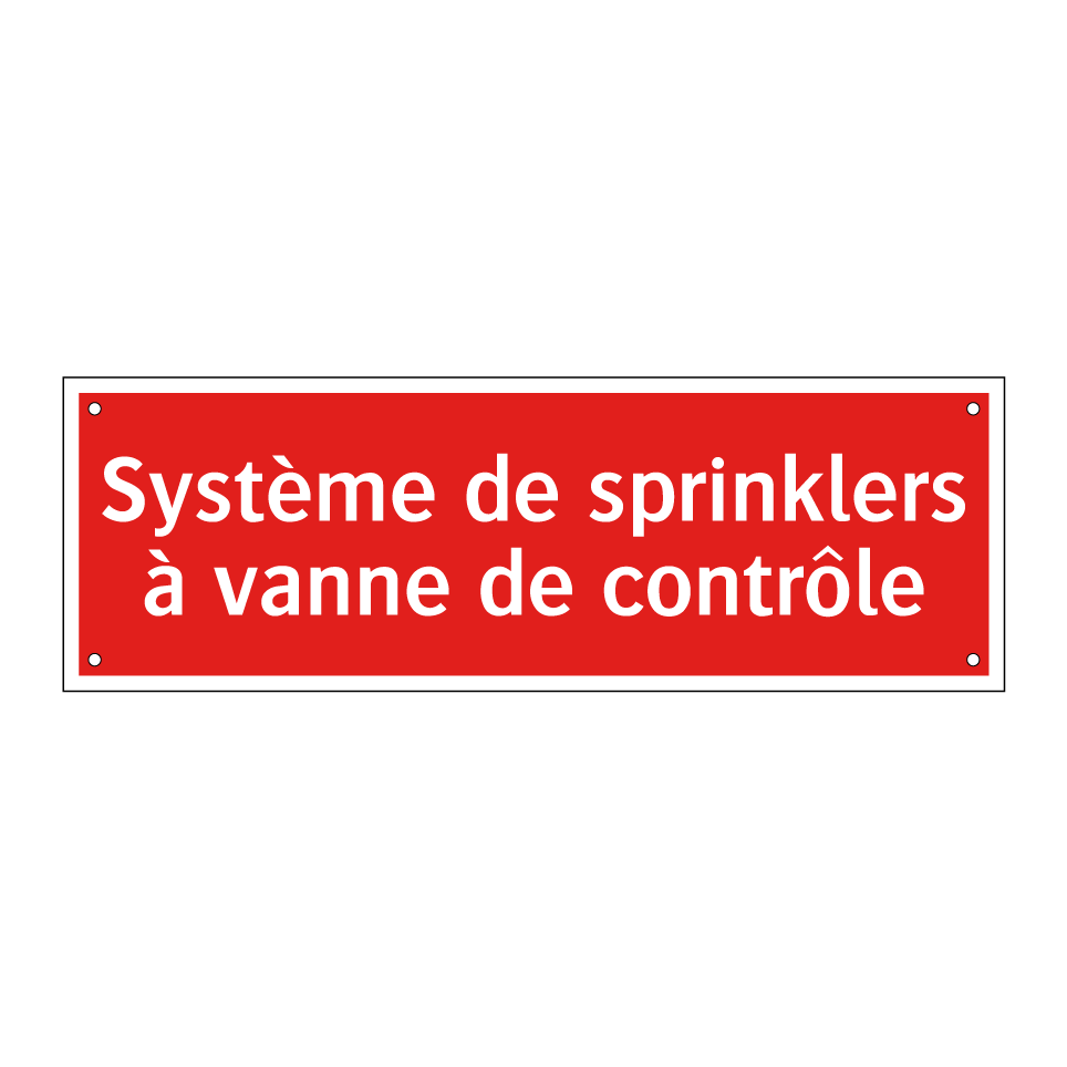 Panneau de signalisation incendie avec le texte Système de sprinklers à vanne de contrôle