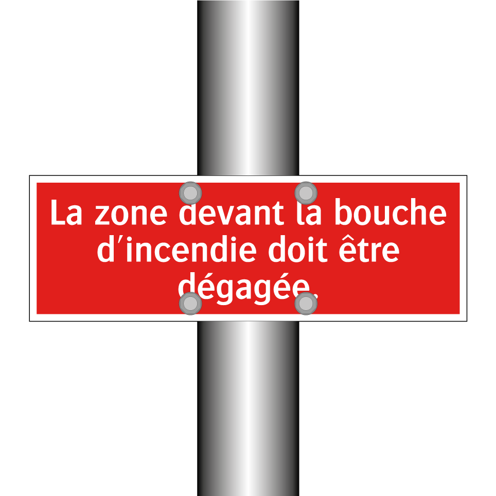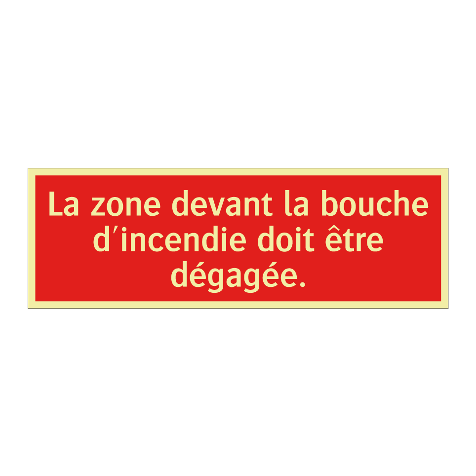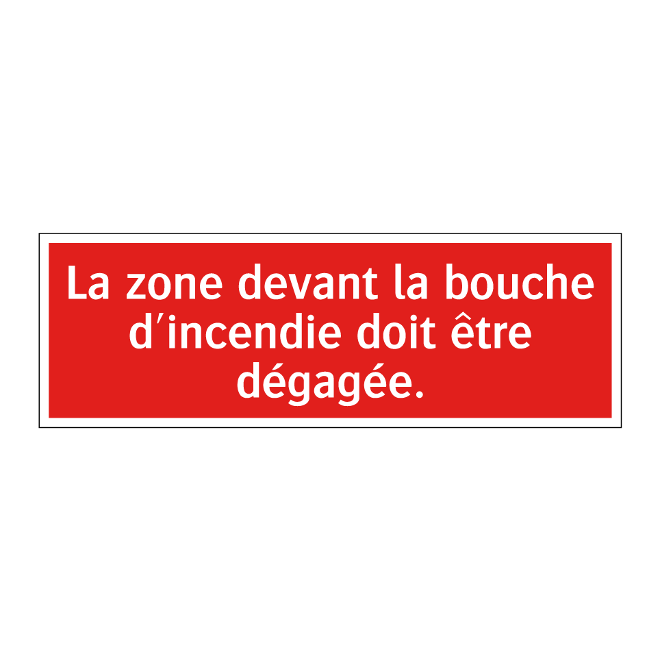Panneau de signalisation incendie avec le texte La zone devant la bouche d'incendie doit être dégagée.