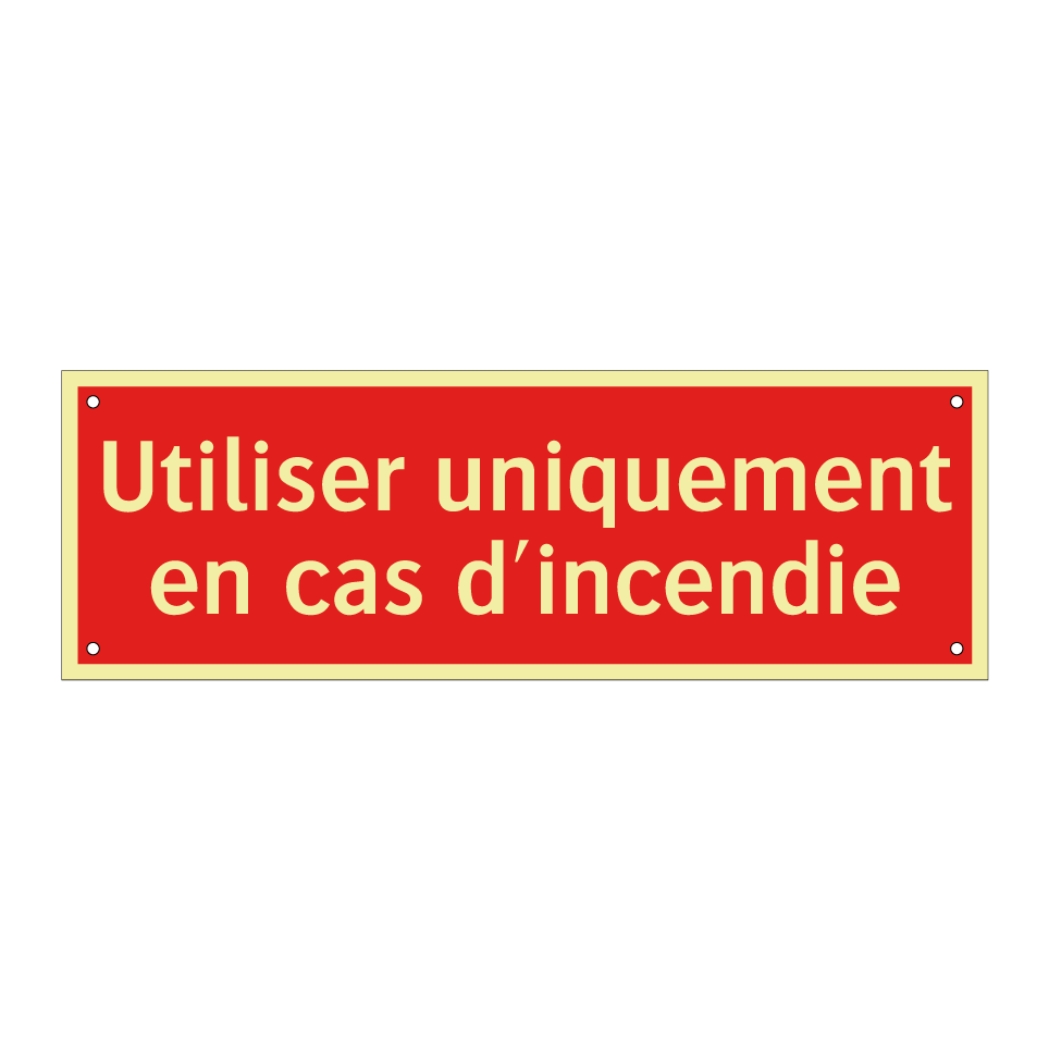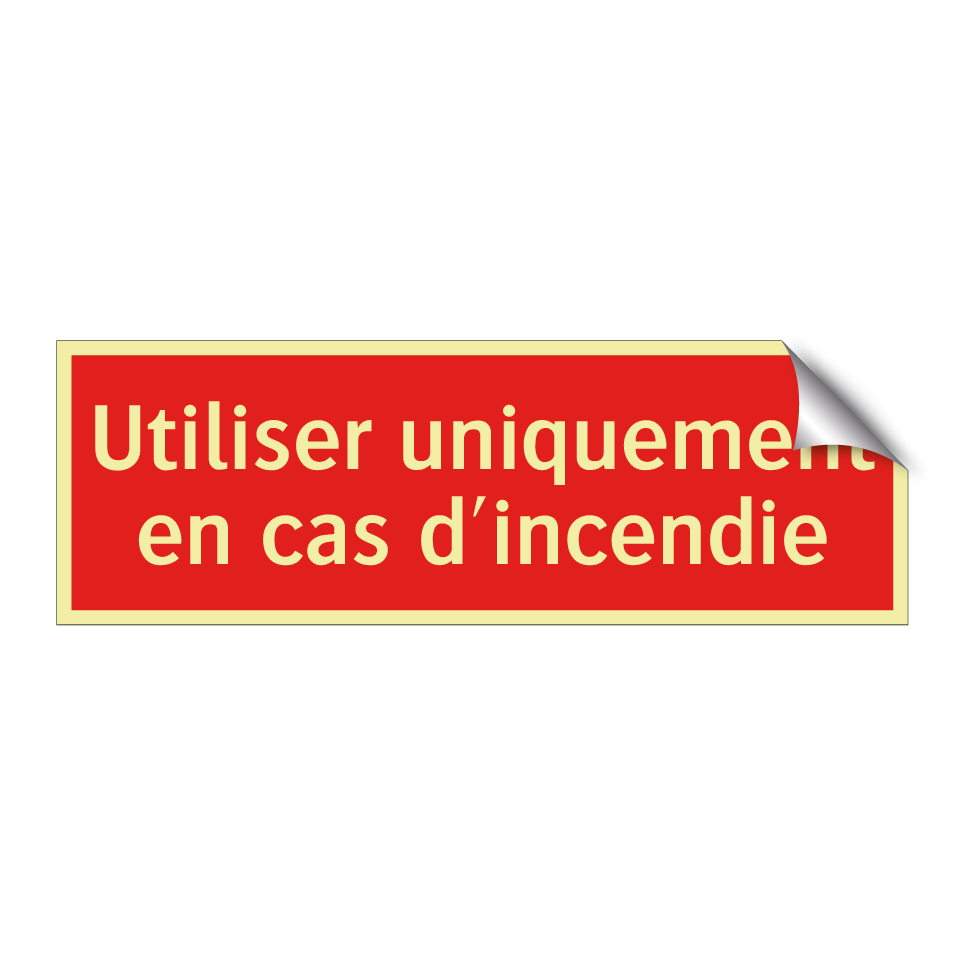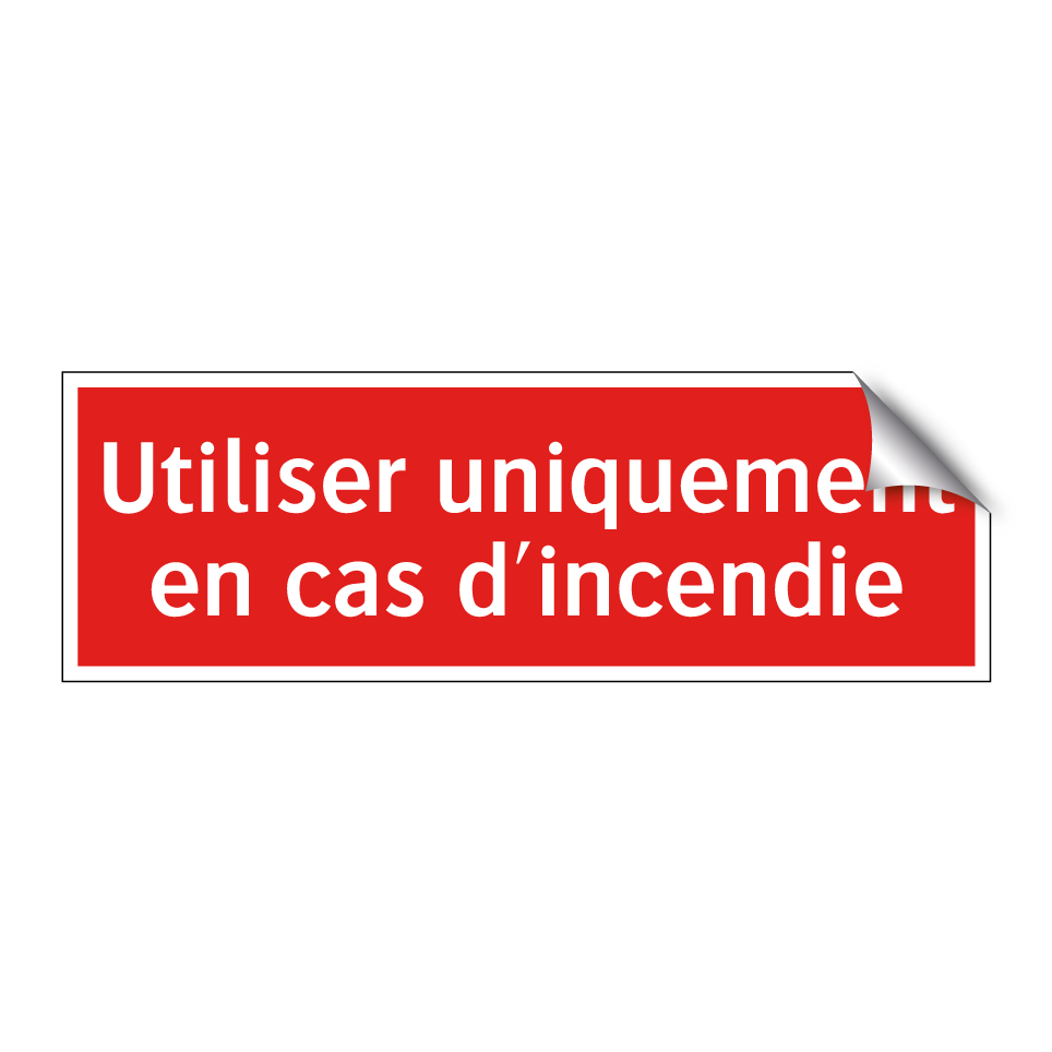 Panneau de signalisation incendie avec le texte Utiliser uniquement en cas d'incendie