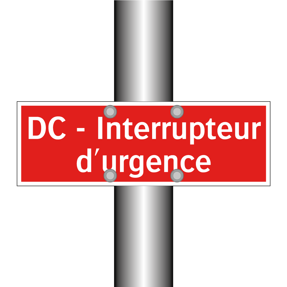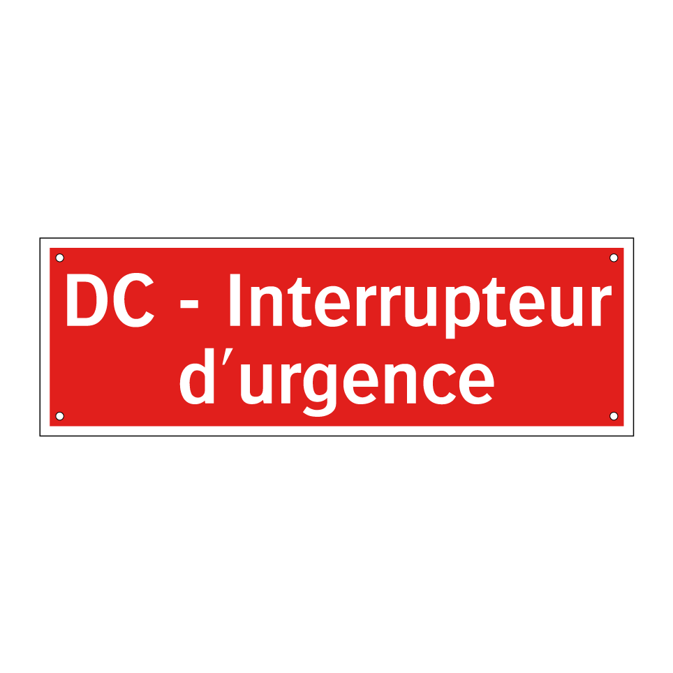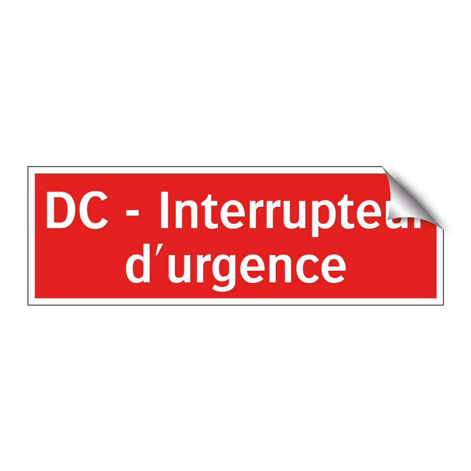 Panneau de signalisation incendie avec le texte DC - Interrupteur d'urgence