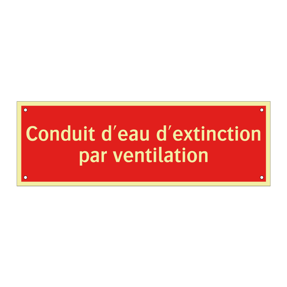 Panneau de signalisation incendie avec le texte Conduit d'eau d'extinction par ventilation