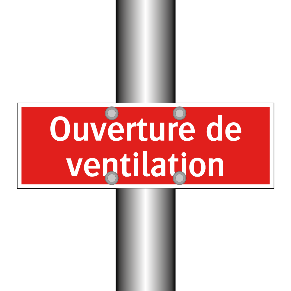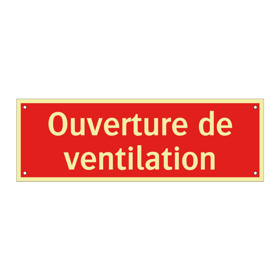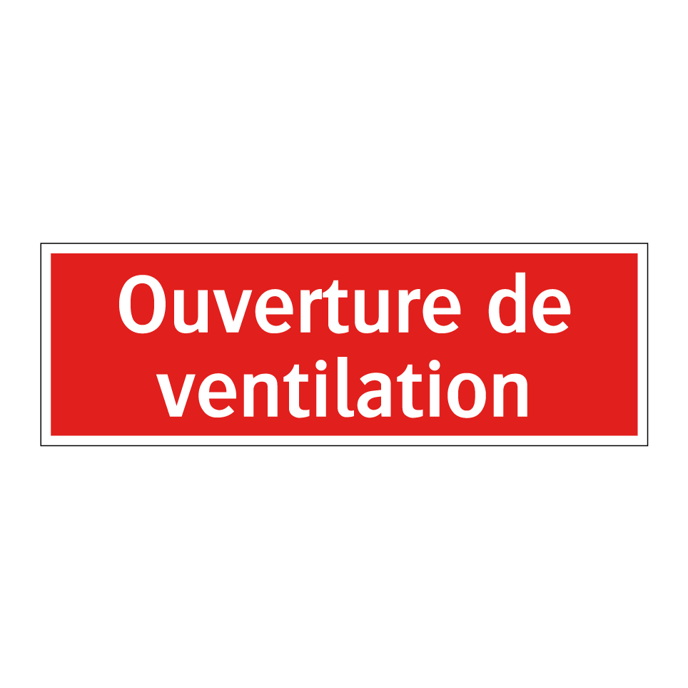 Panneau de signalisation incendie avec le texte Ouverture de ventilation