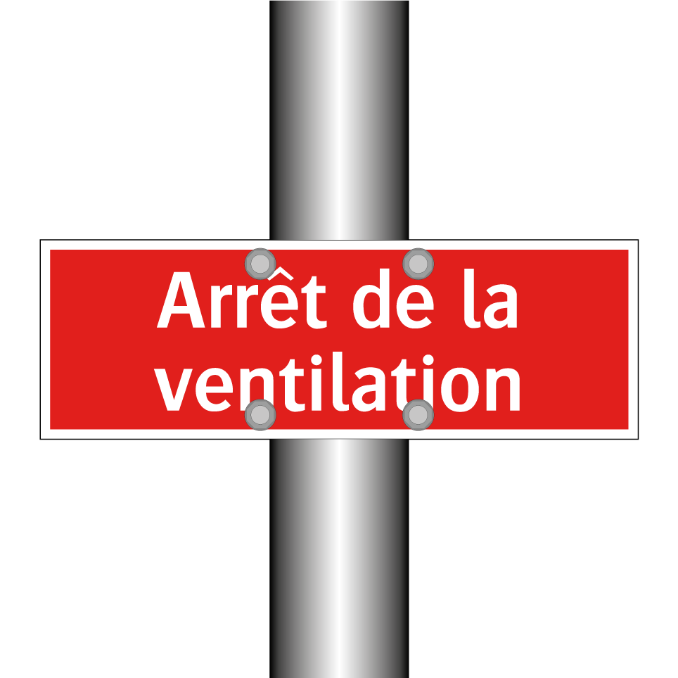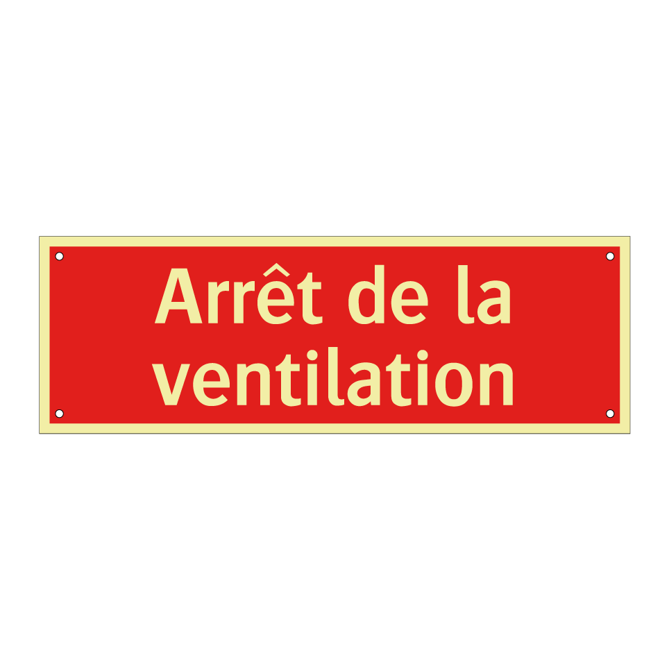 Panneau de signalisation incendie avec le texte Arrêt de la ventilation