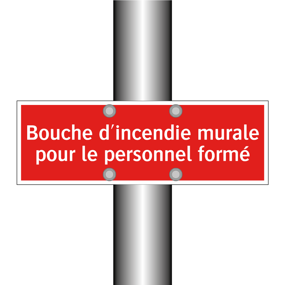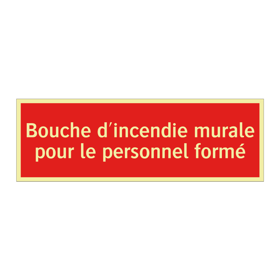 Panneau de signalisation incendie avec le texte Bouche d'incendie murale pour le personnel formé