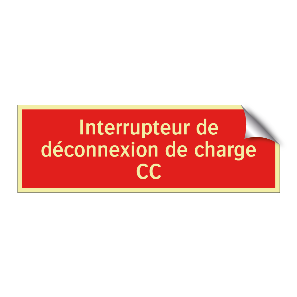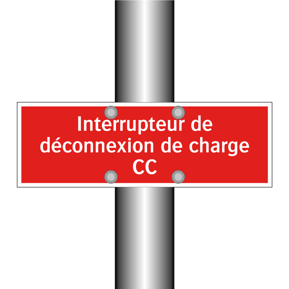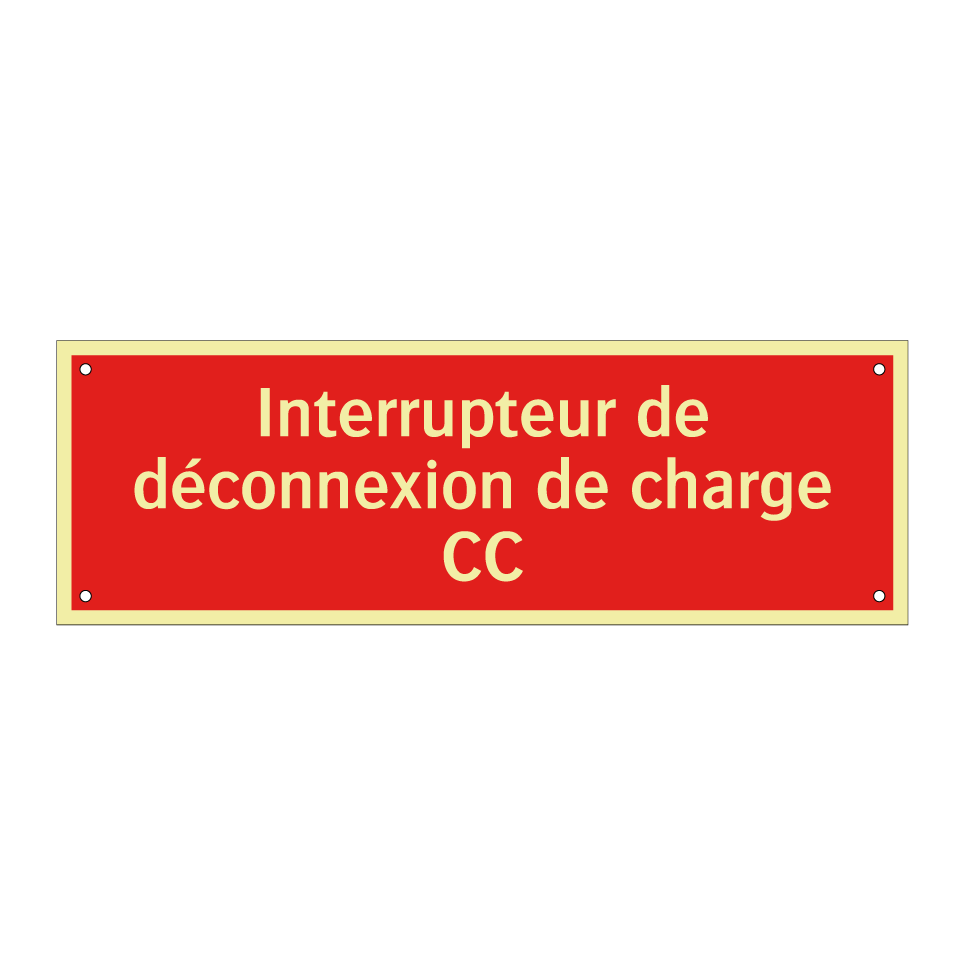 Panneau de signalisation incendie avec le texte Interrupteur de déconnexion de charge CC