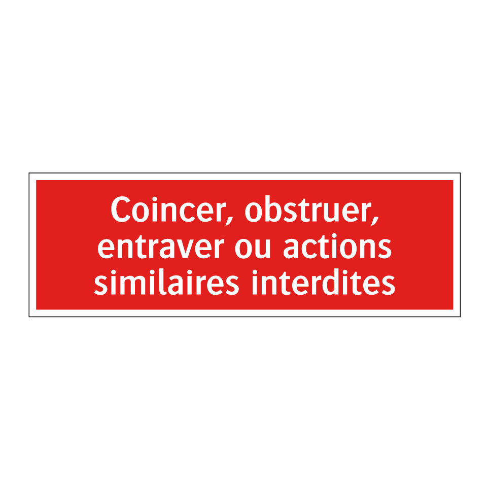 Panneau de signalisation incendie avec le texte Coincer, obstruer, entraver ou actions similaires interdites
