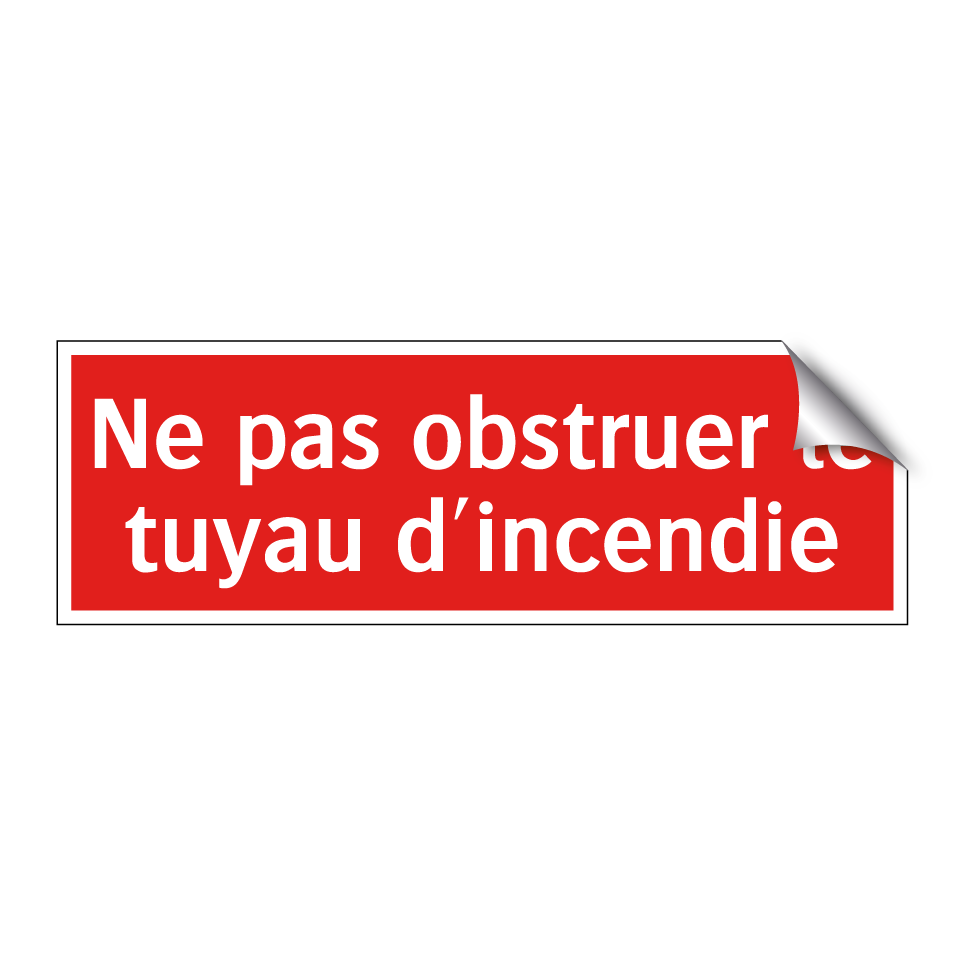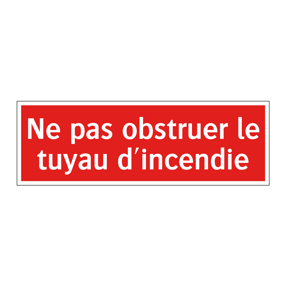 Panneau de signalisation incendie avec le texte Ne pas obstruer le tuyau d'incendie