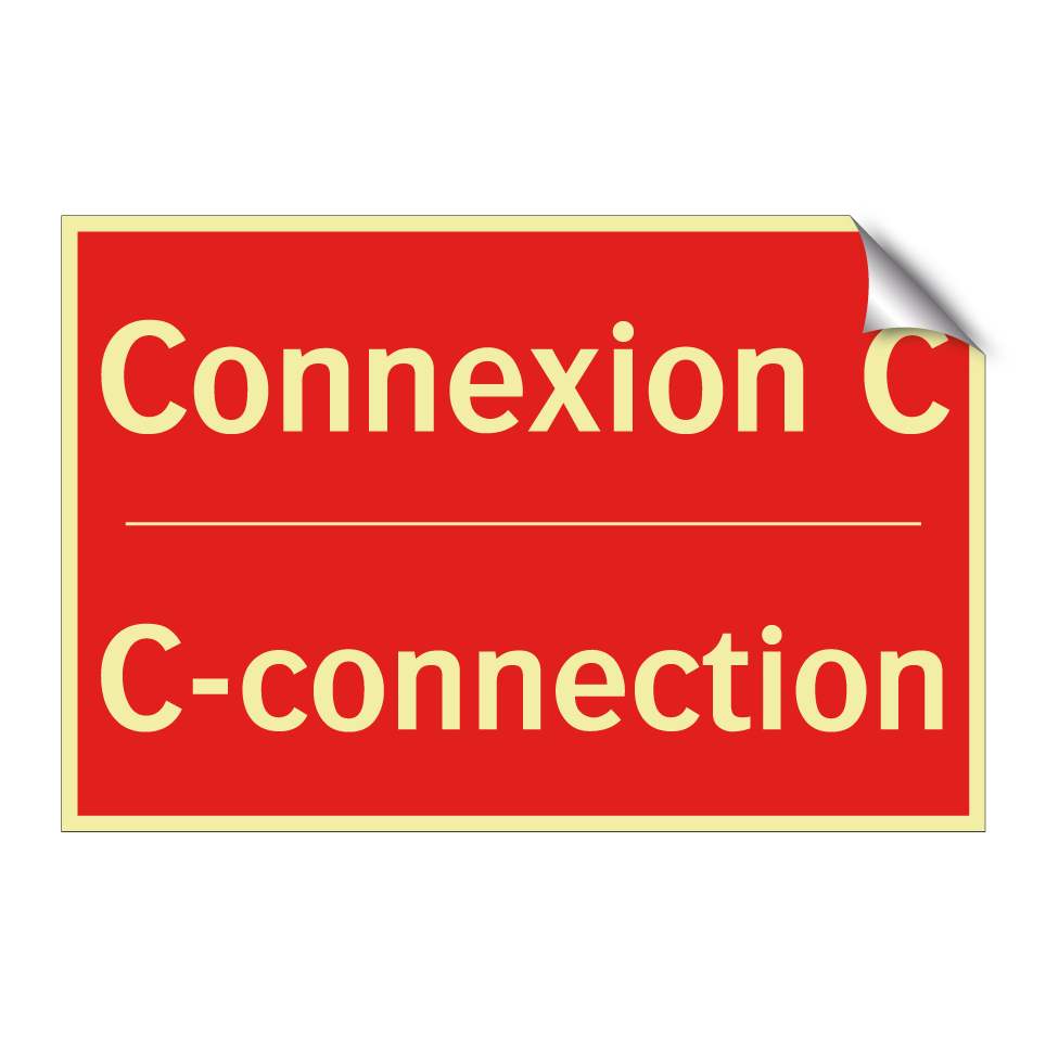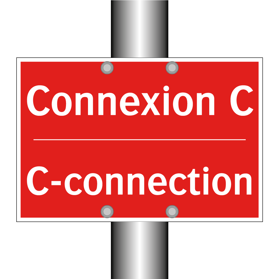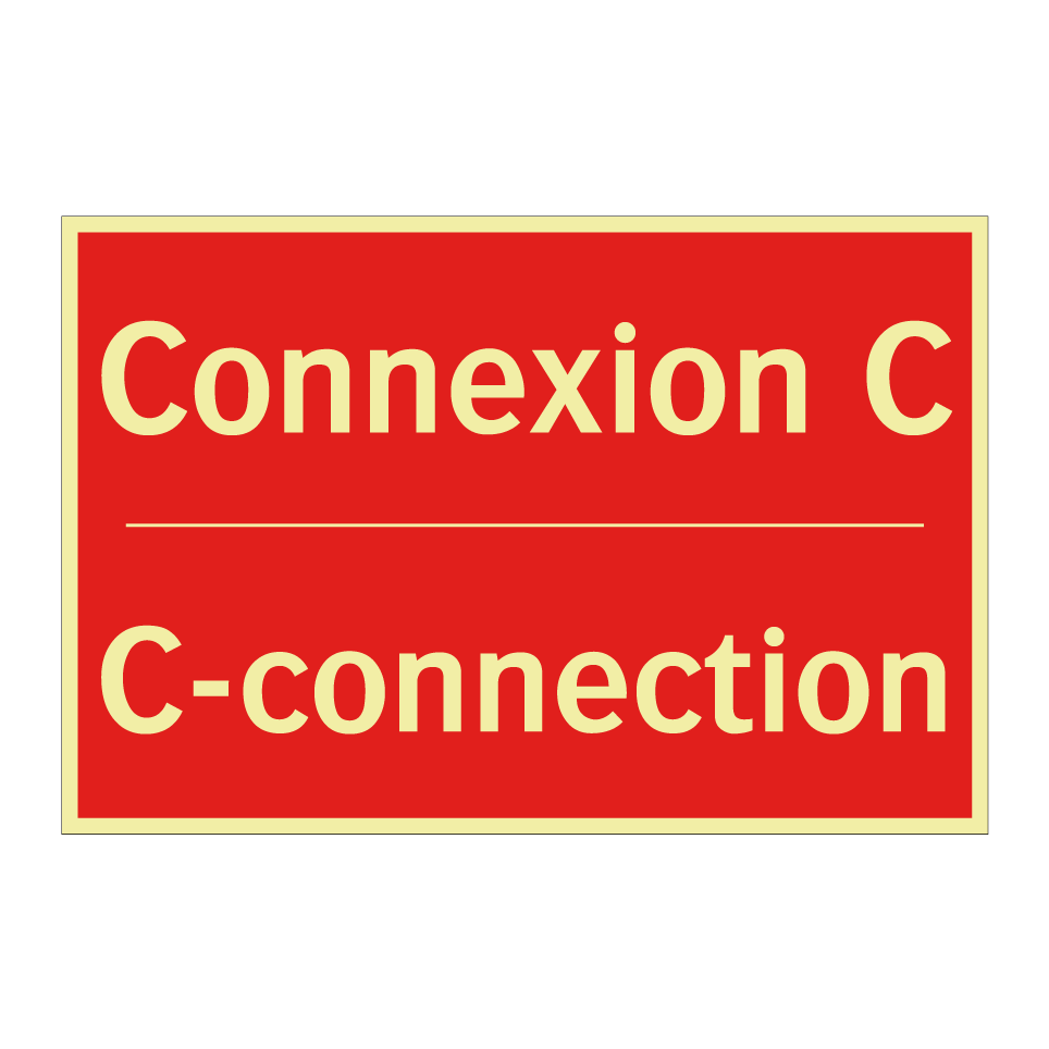 Panneau de signalisation incendie bilingue avec texte en français : "Connexion C", et en anglais : "C-connection"