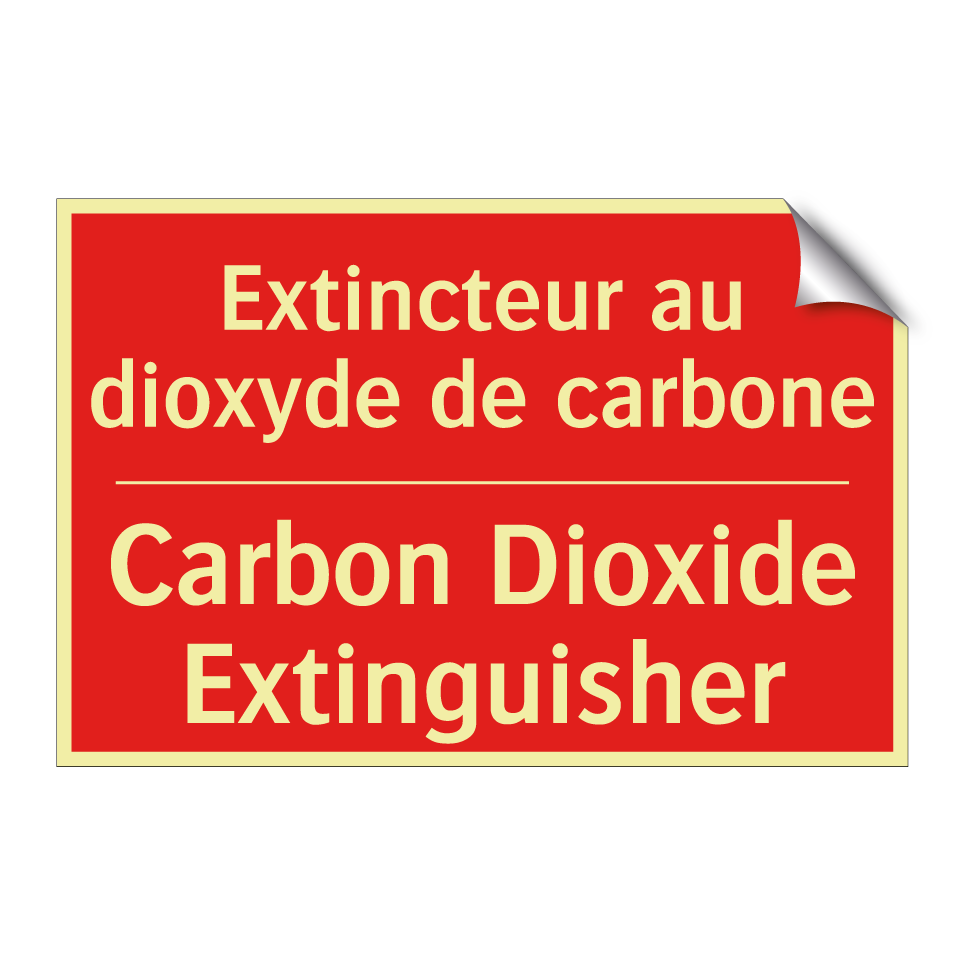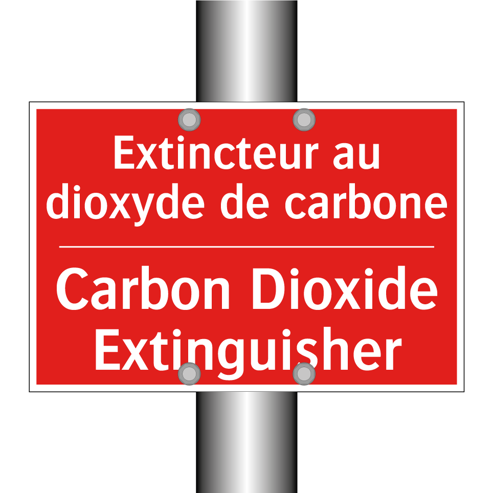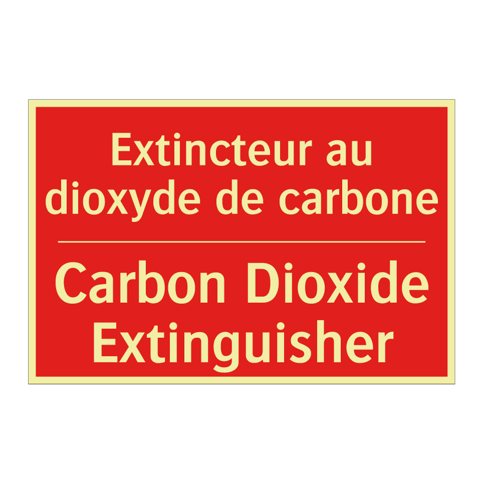 Panneau de signalisation incendie bilingue avec texte en français : "Extincteur au dioxyde de carbone", et en anglais : "Carbon Dioxide Extinguisher"