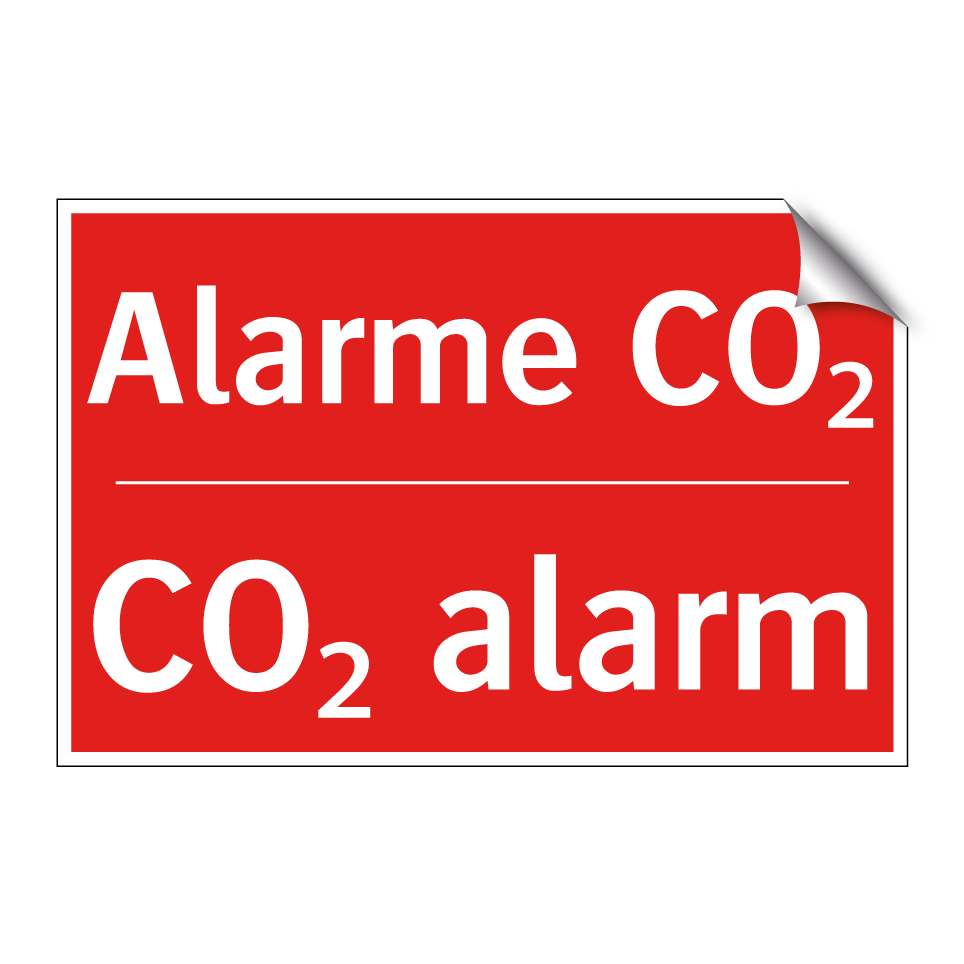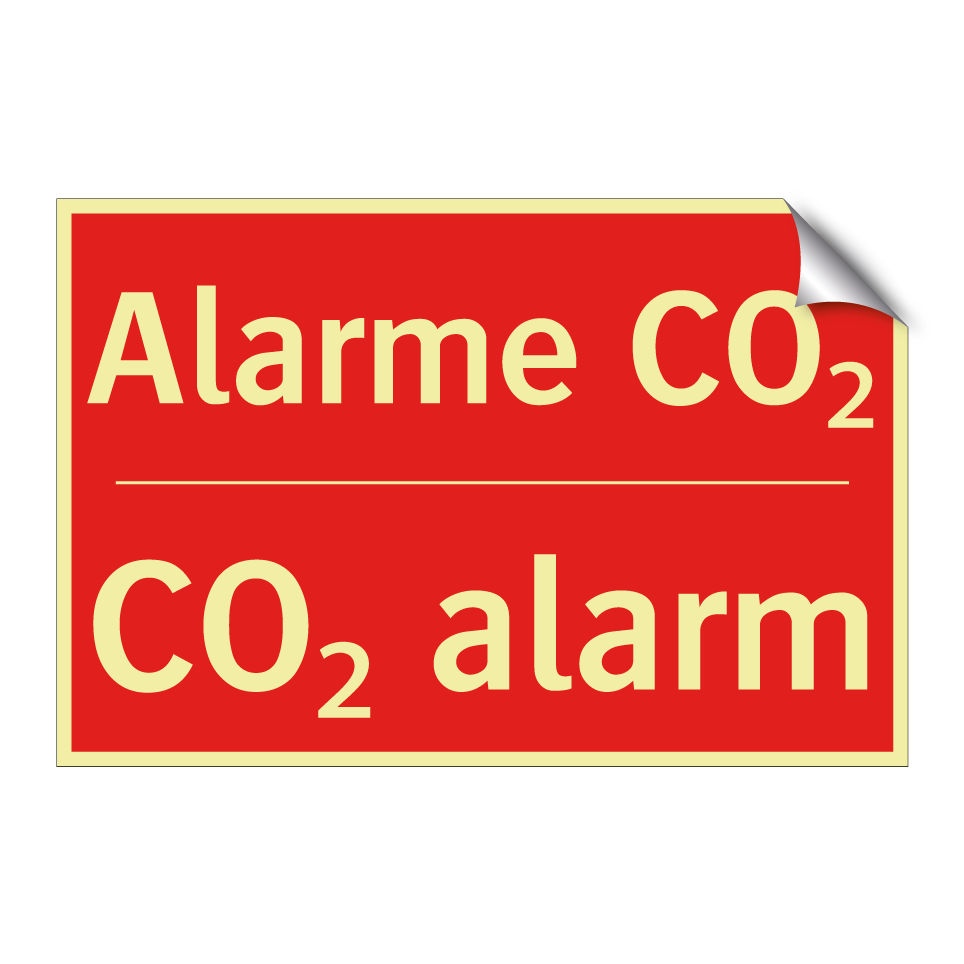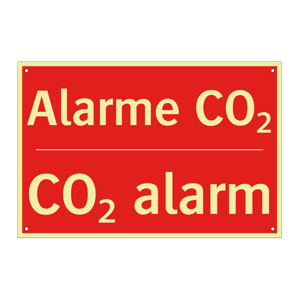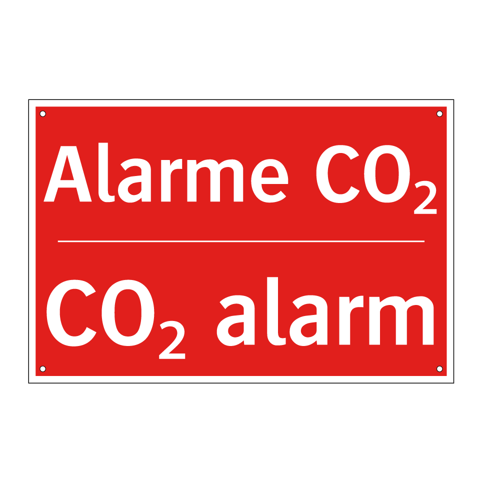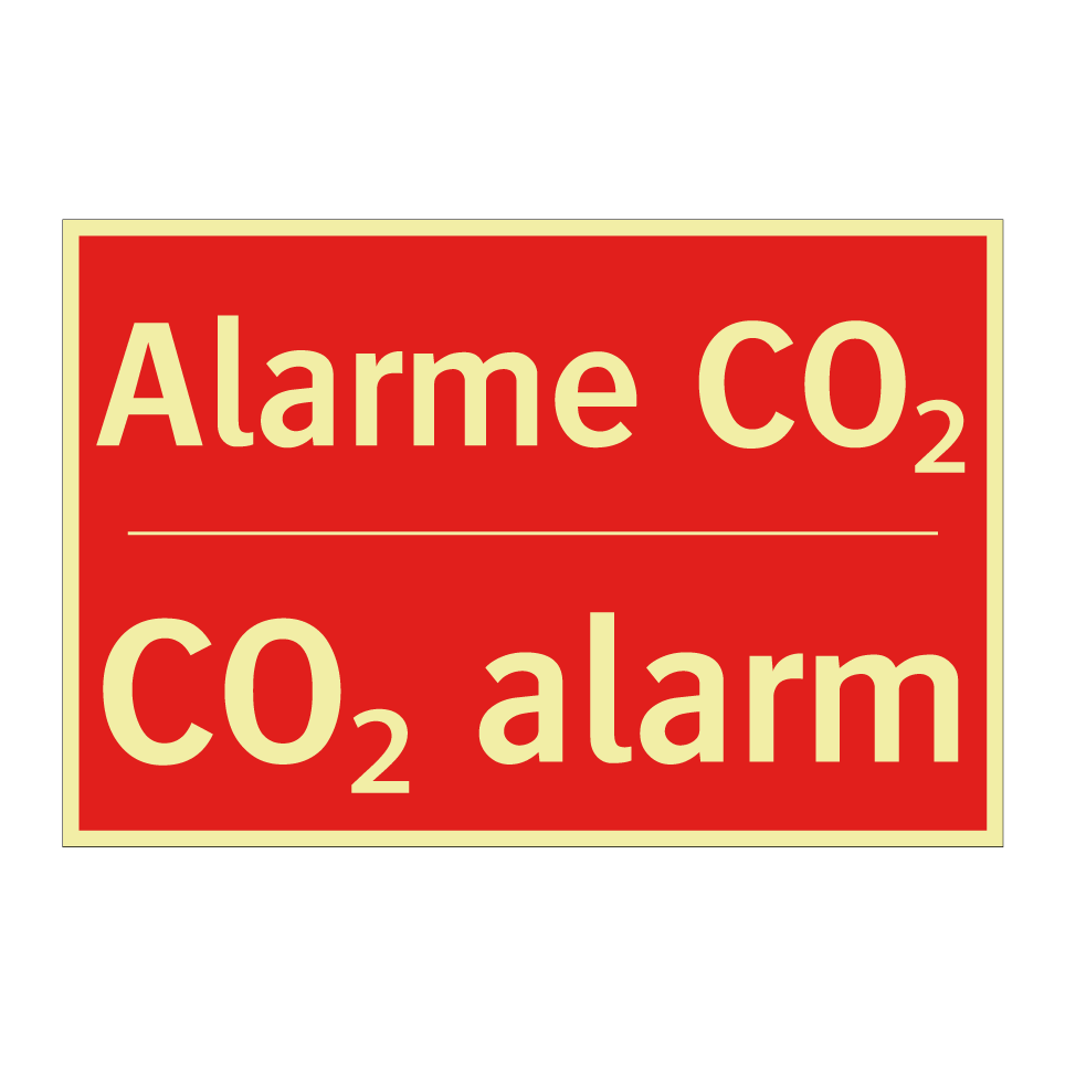 Panneau de signalisation incendie bilingue avec texte en français : "Alarme CO₂", et en anglais : "CO₂ alarm"