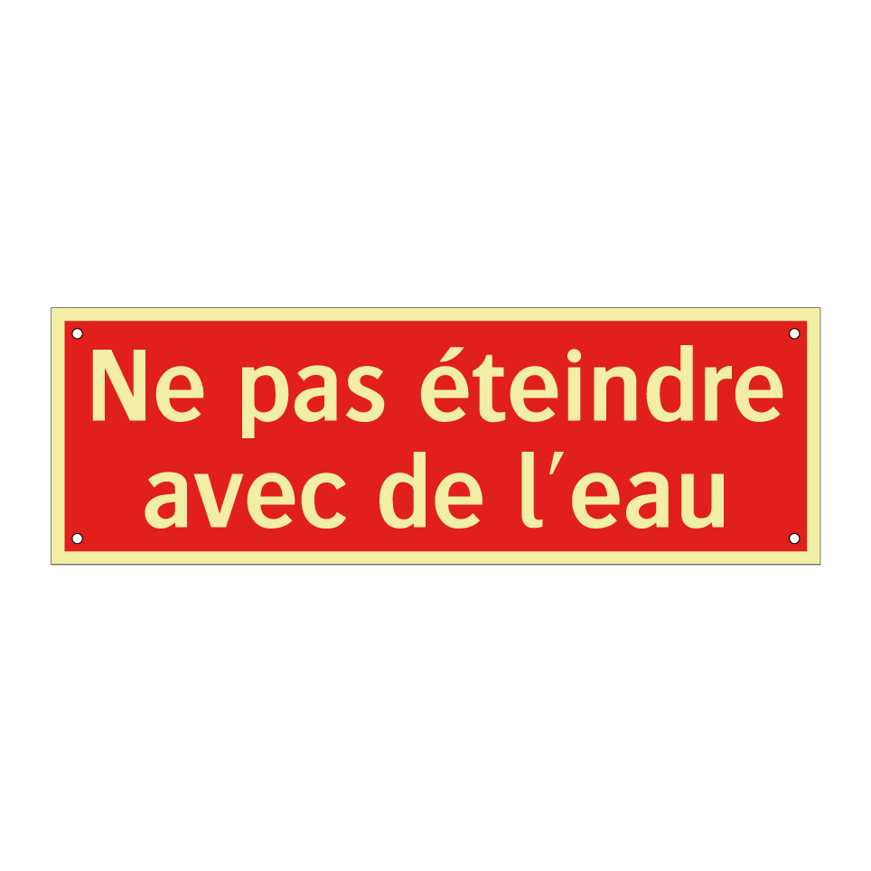 Panneau de signalisation incendie avec le texte Ne pas éteindre avec de l'eau