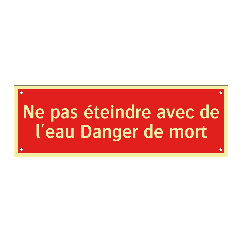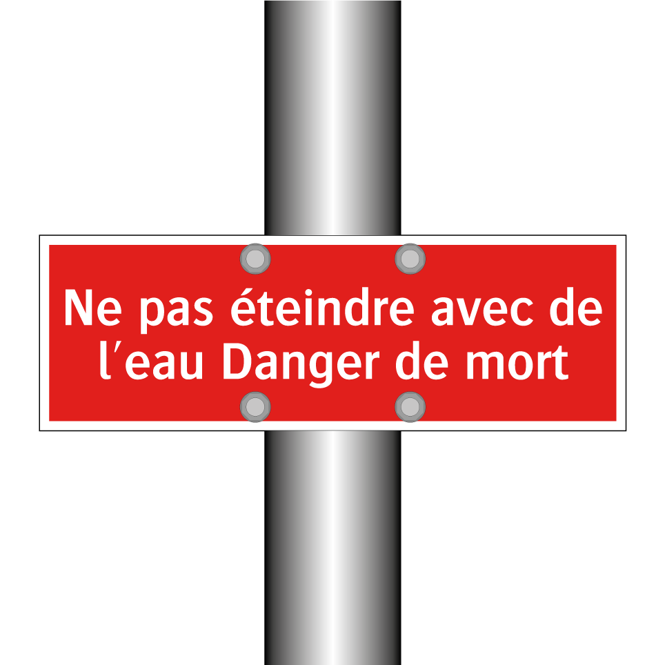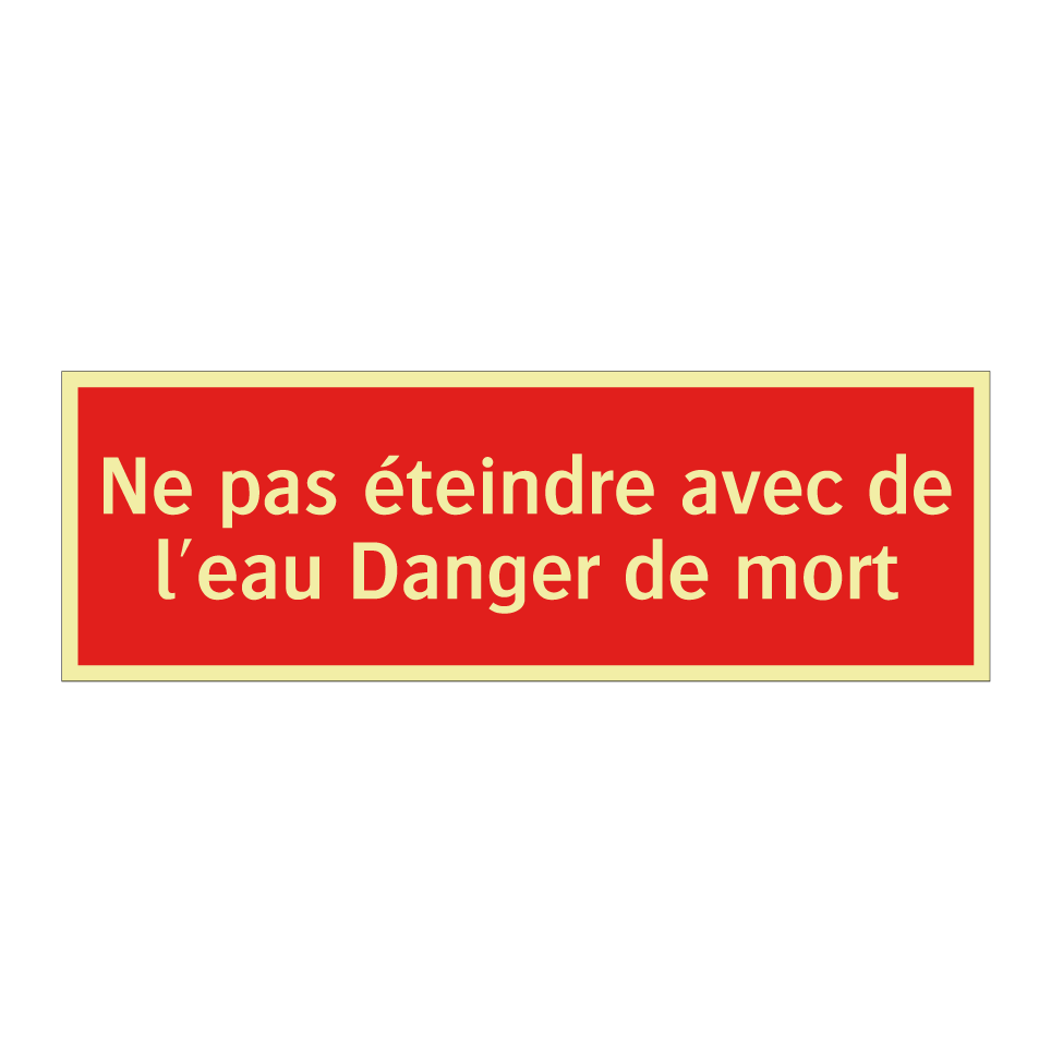 Panneau de signalisation incendie avec le texte Ne pas éteindre avec de l'eau Danger de mort
