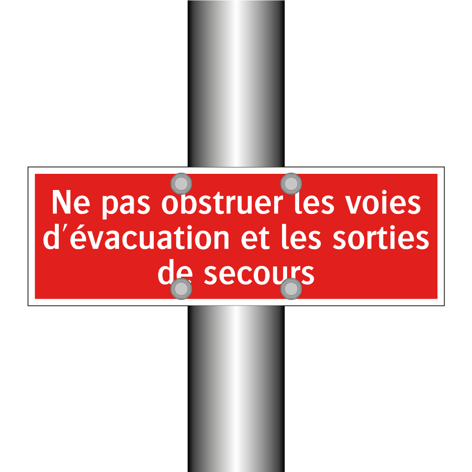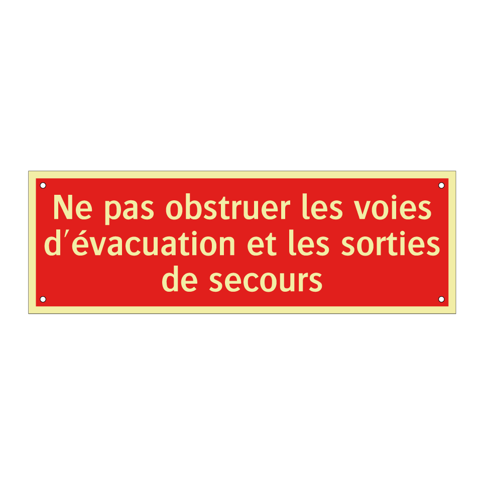 Panneau de signalisation incendie avec le texte Ne pas obstruer les voies d'évacuation et les sorties de secours
