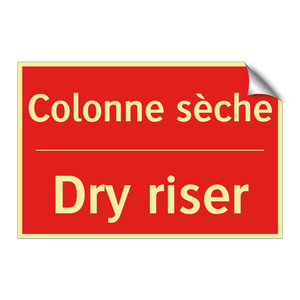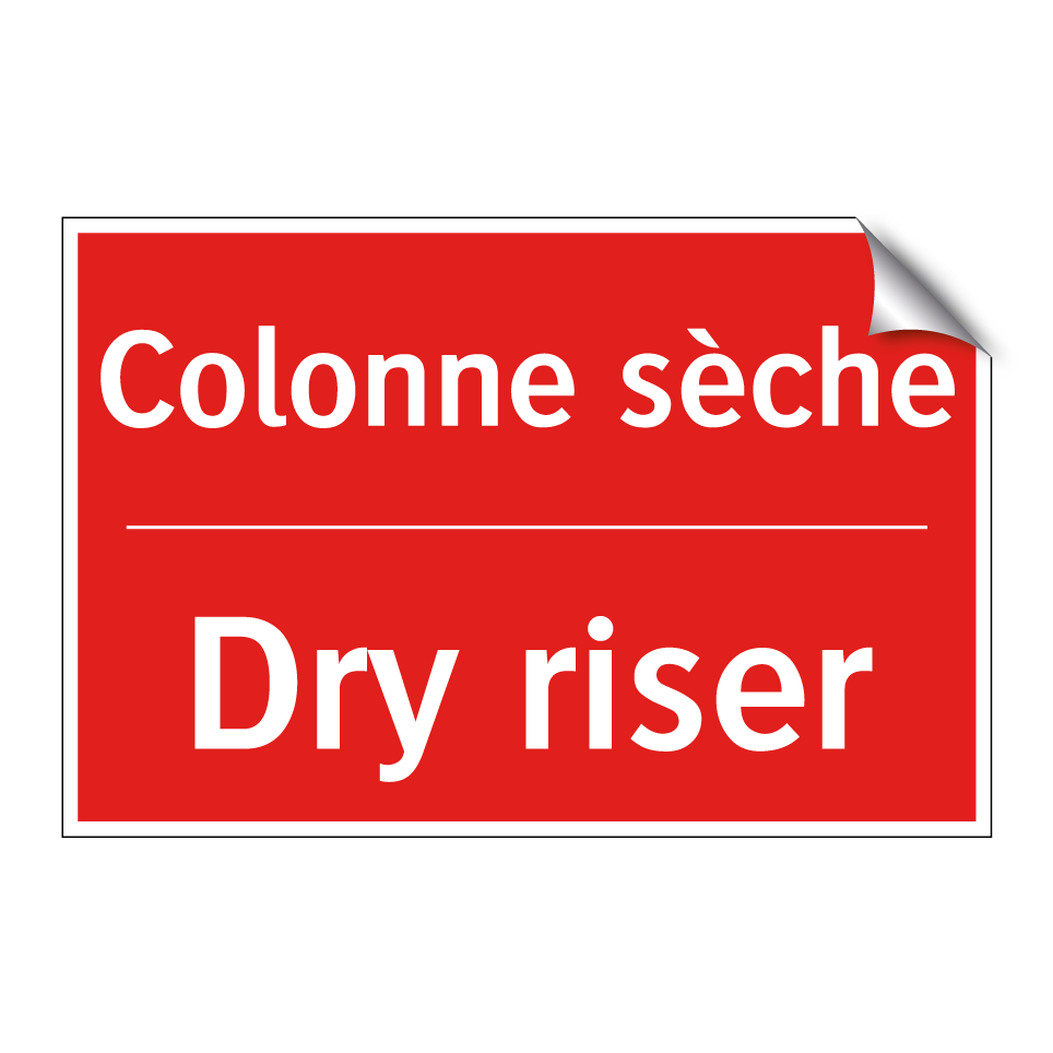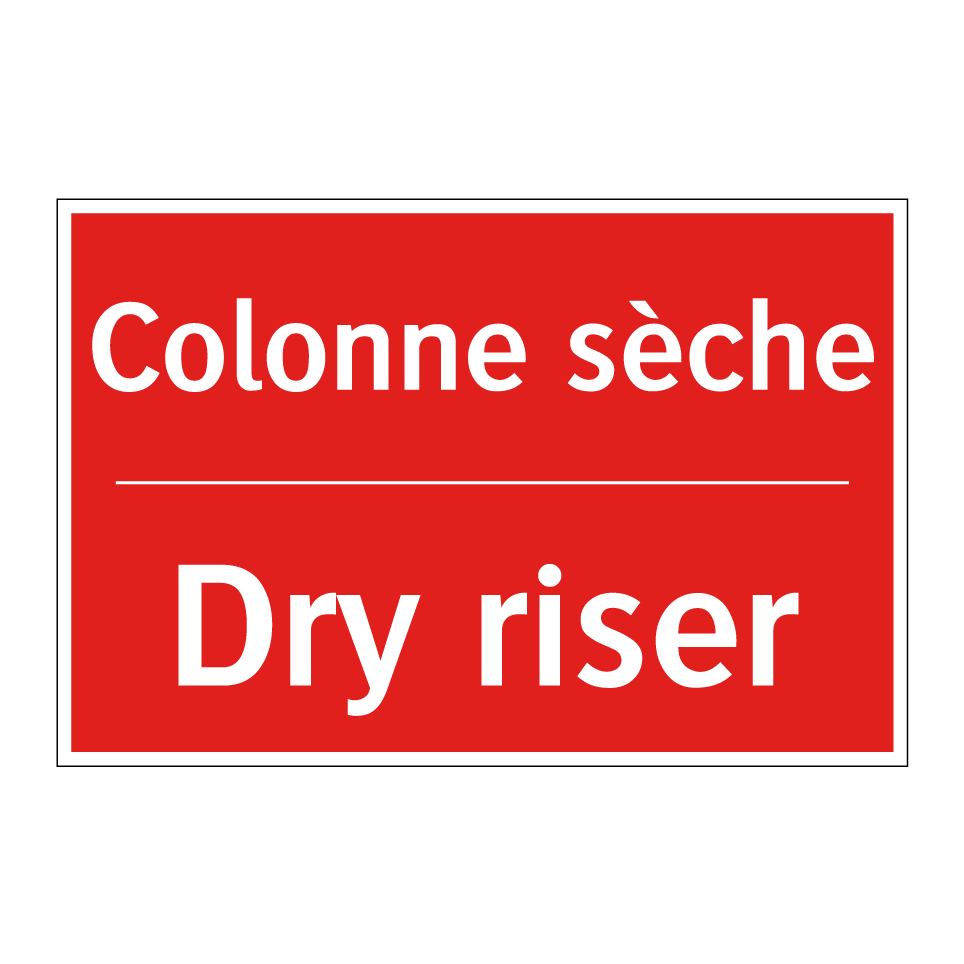Panneau de signalisation incendie bilingue avec texte en français : "Colonne sèche", et en anglais : "Dry riser"