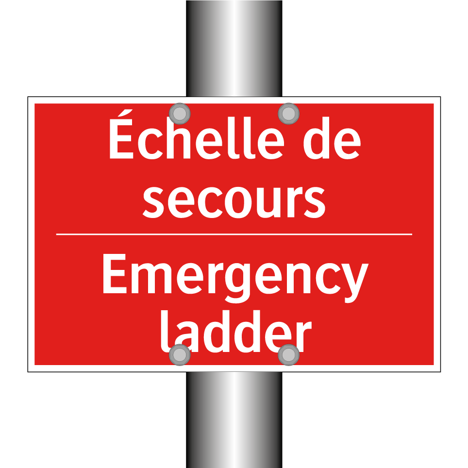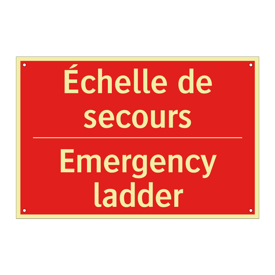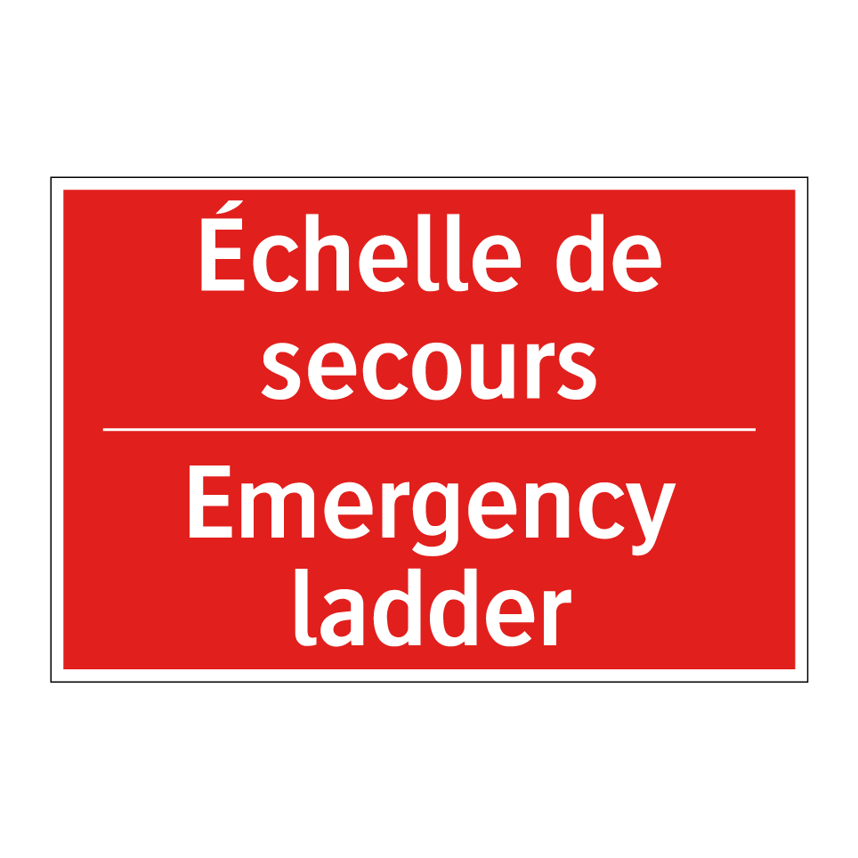 Panneau de signalisation incendie bilingue avec texte en français : "Échelle de secours", et en anglais : "Emergency ladder"