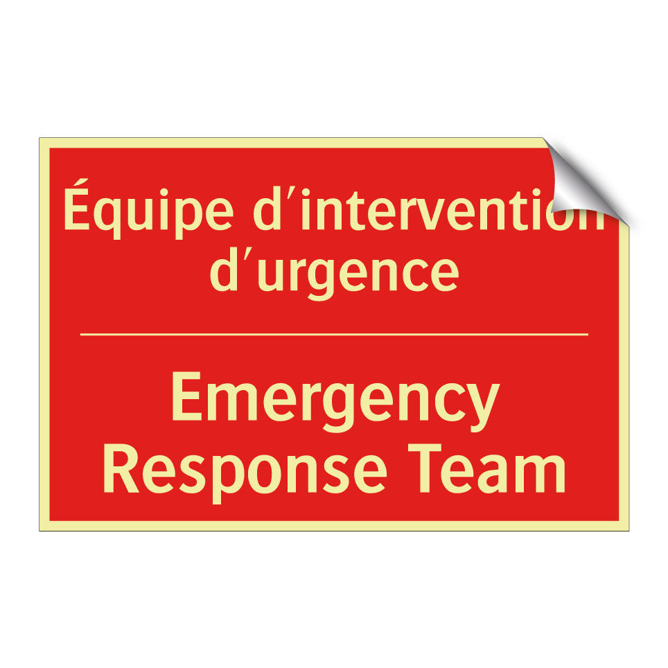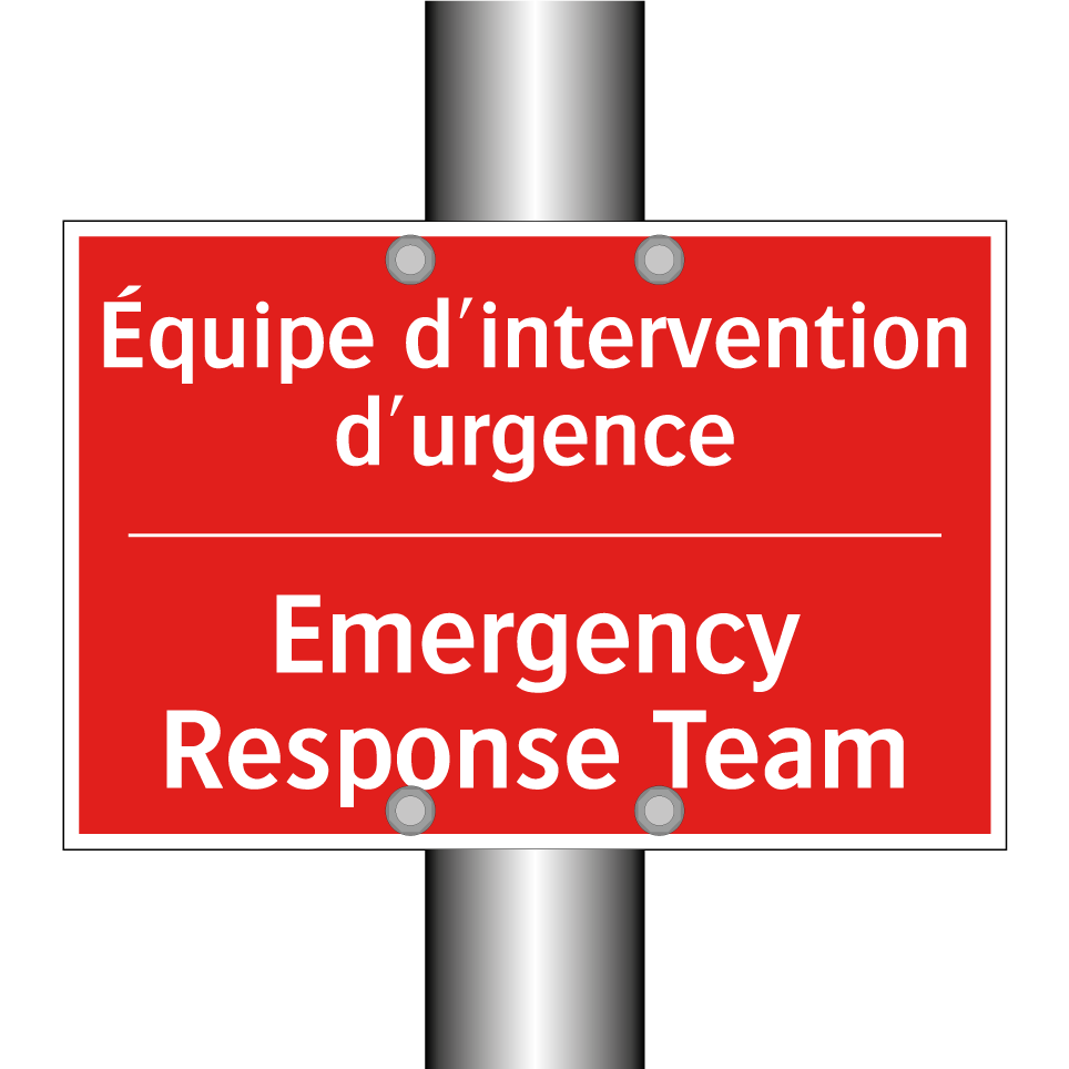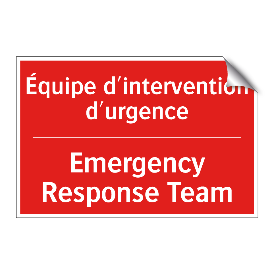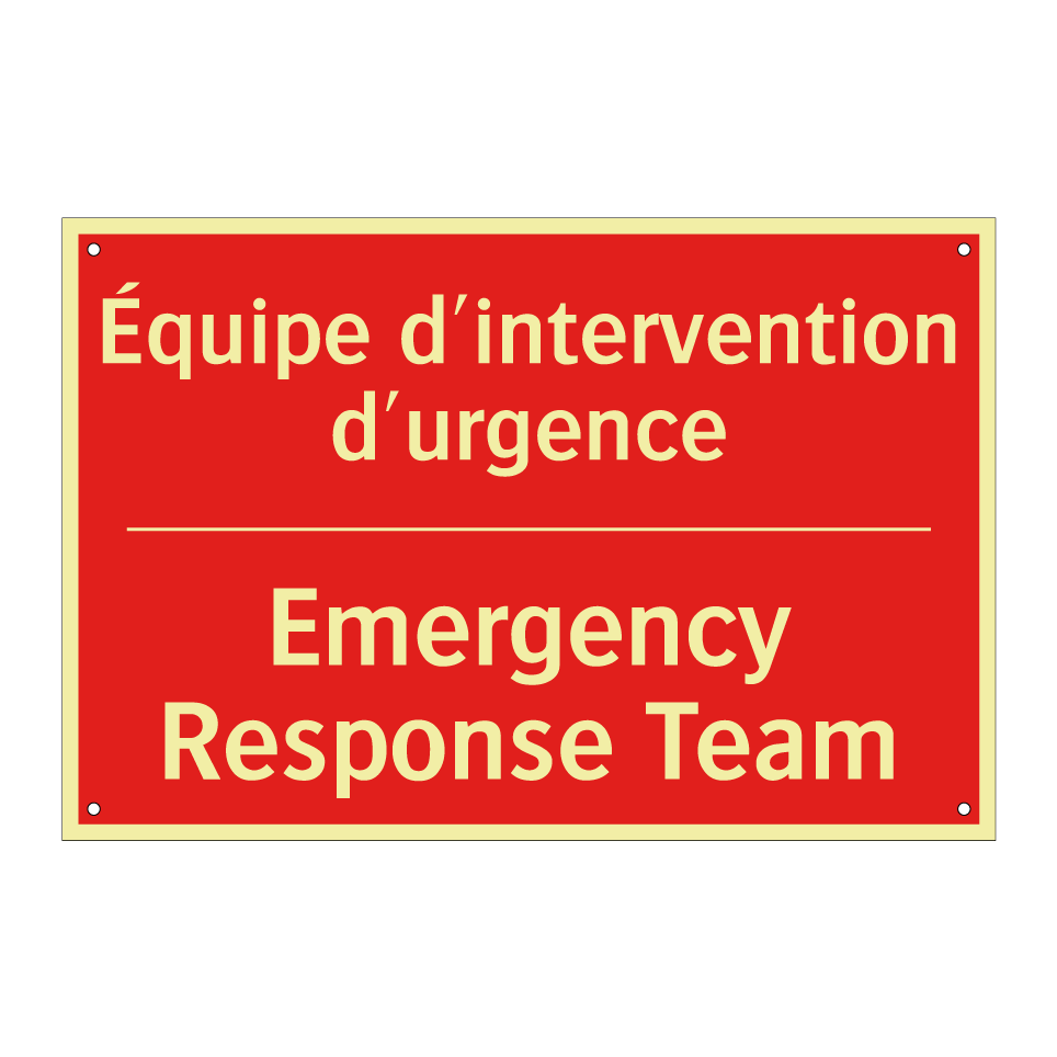 Panneau de signalisation incendie bilingue avec texte en français : "Équipe d'intervention d'urgence", et en anglais : "Emergency Response Team"