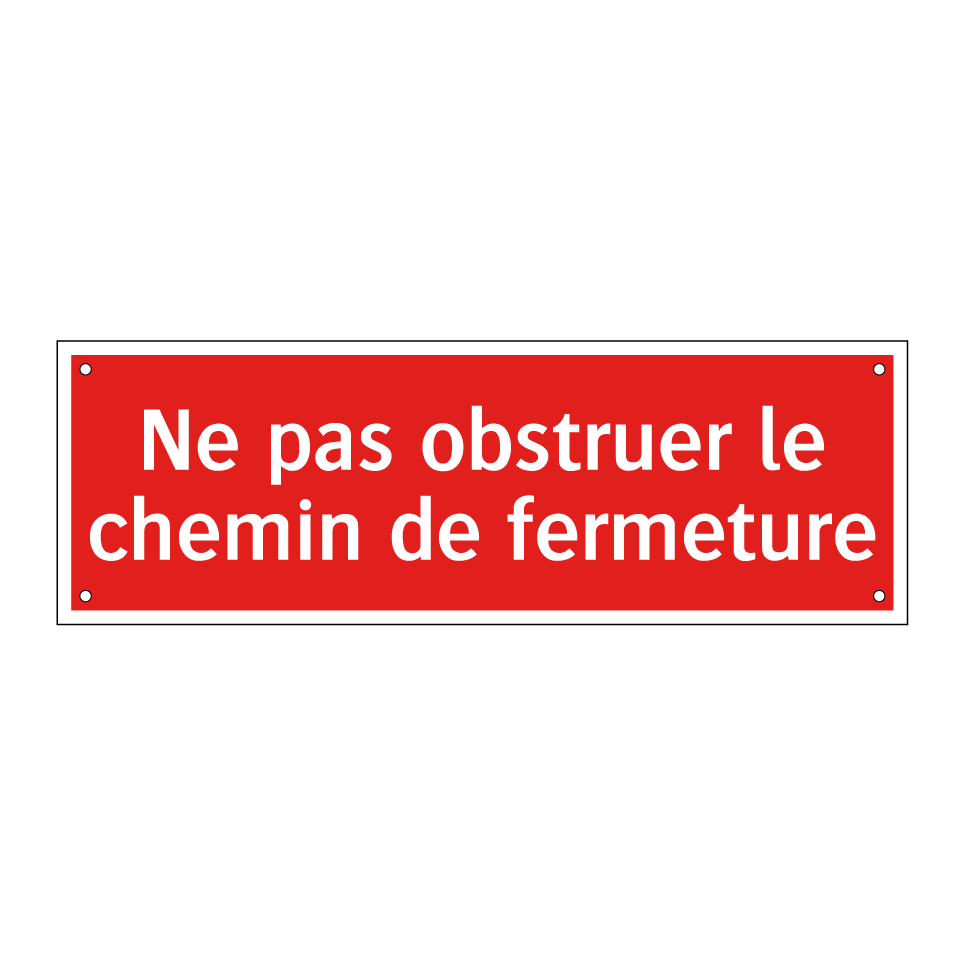 Panneau de signalisation incendie avec le texte Ne pas obstruer le chemin de fermeture