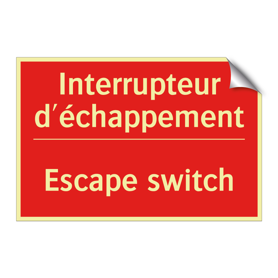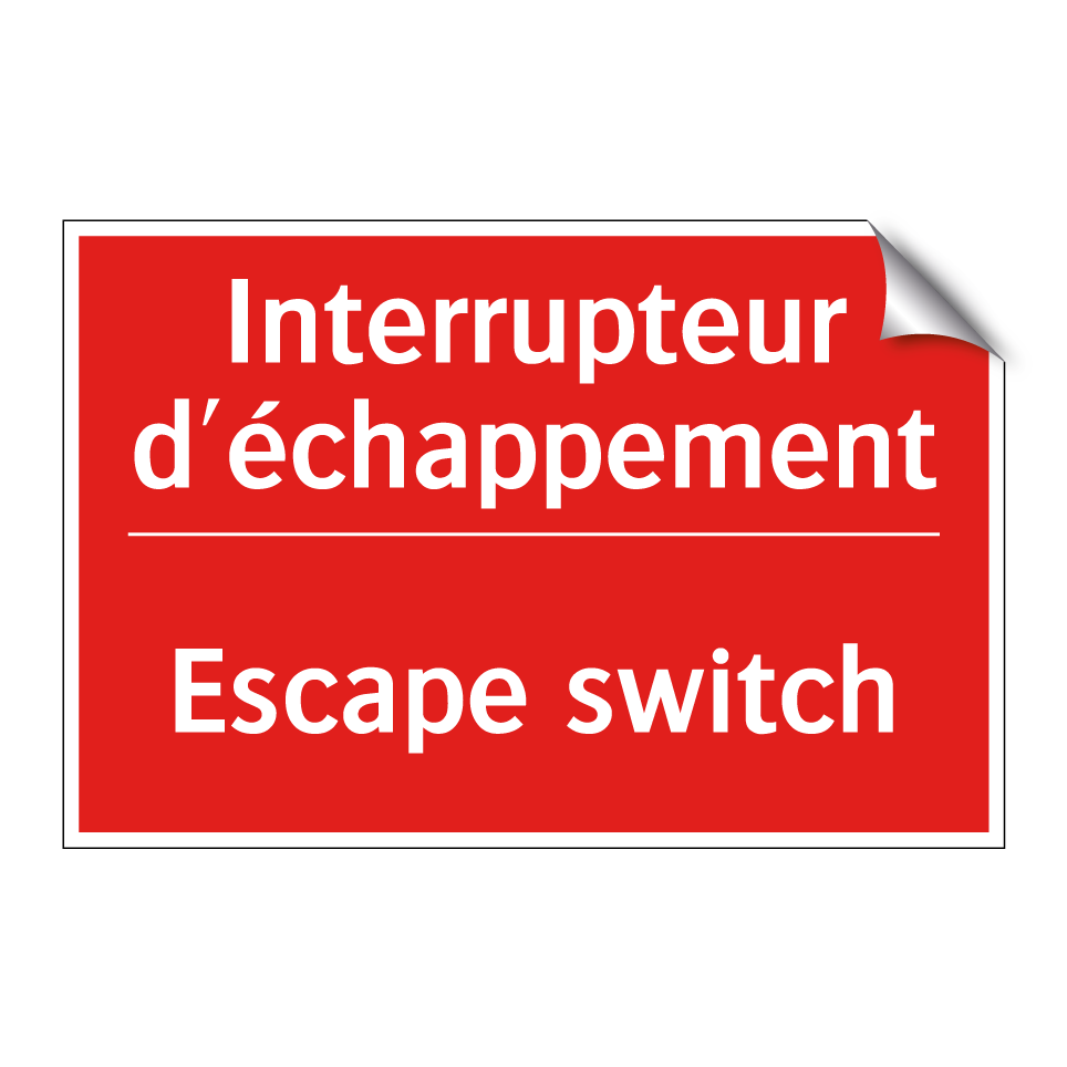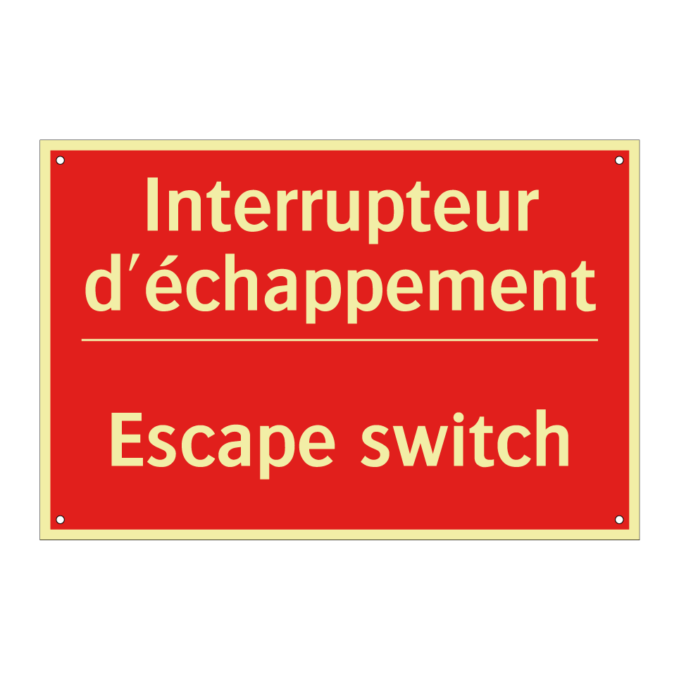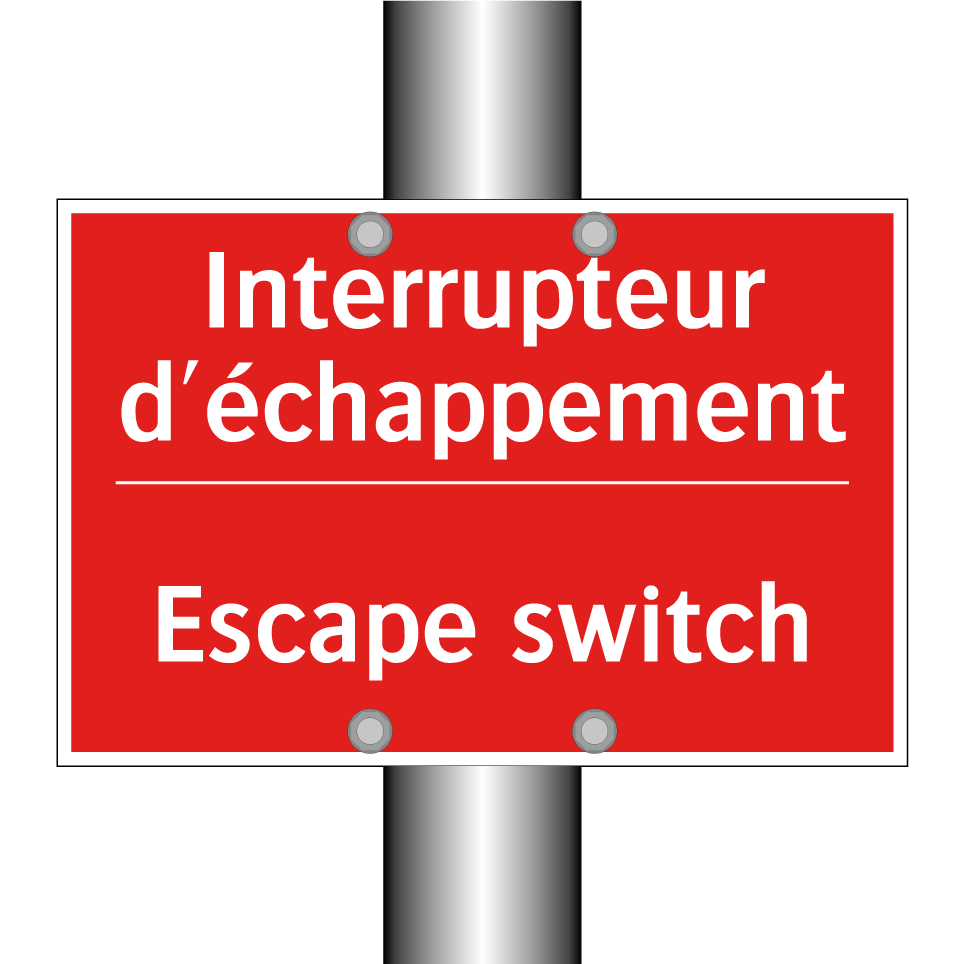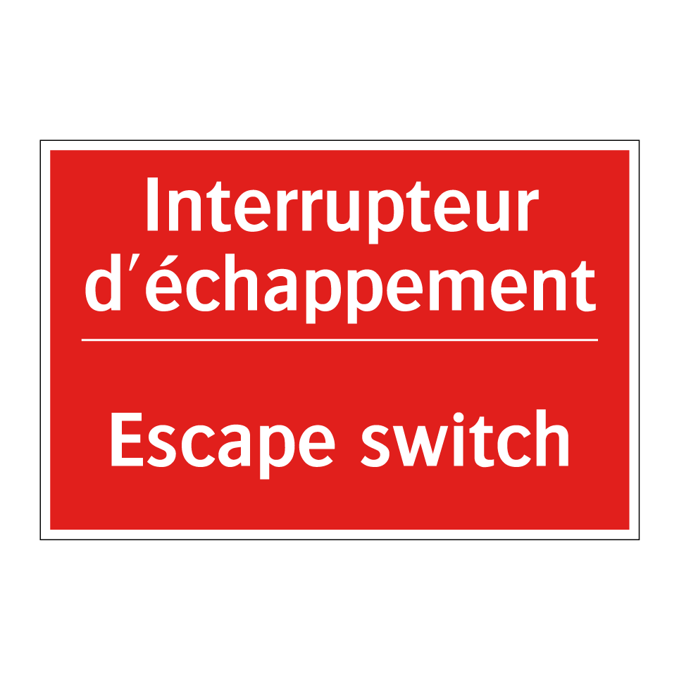 Panneau de signalisation incendie bilingue avec texte en français : "Interrupteur d'échappement", et en anglais : "Escape switch"