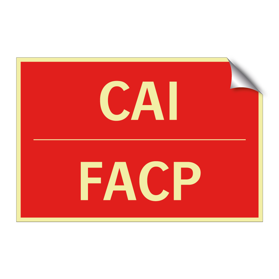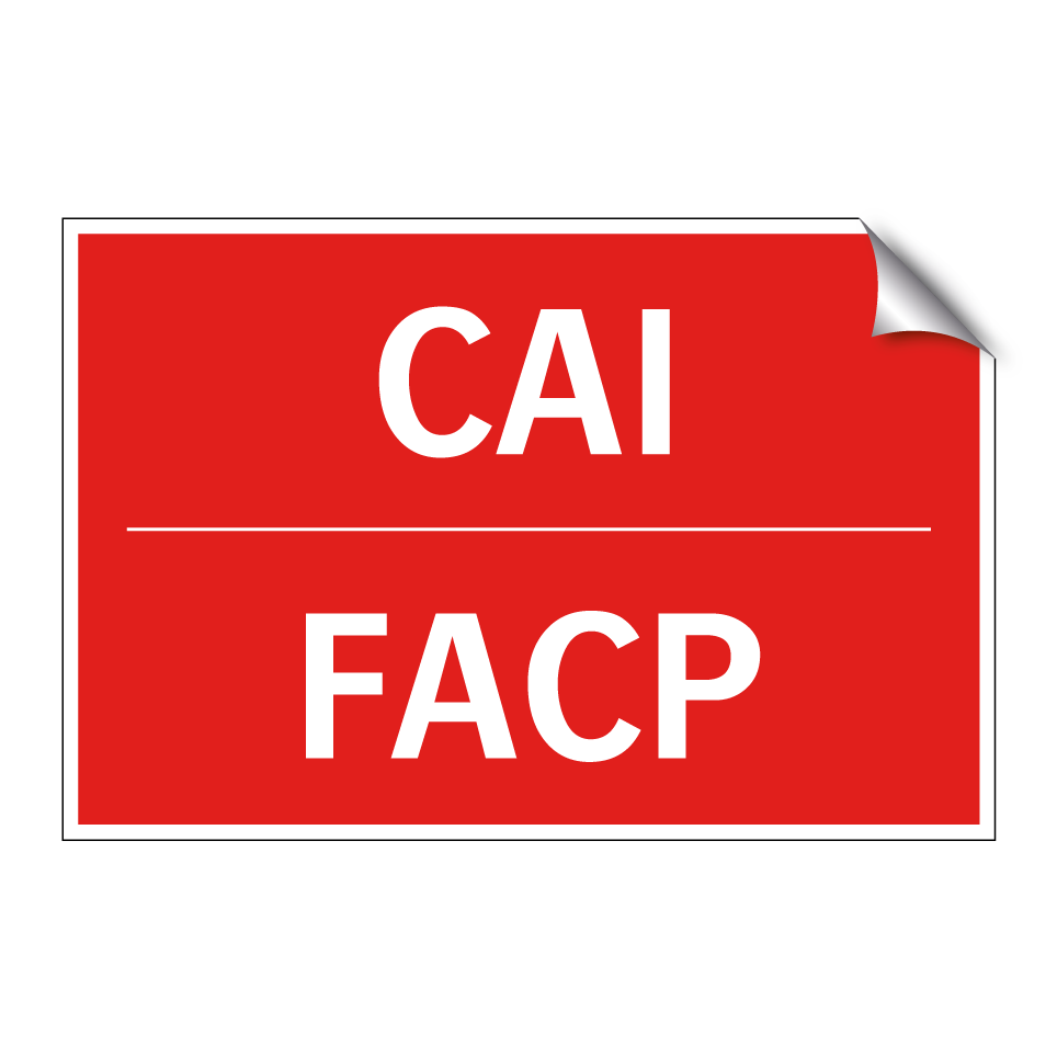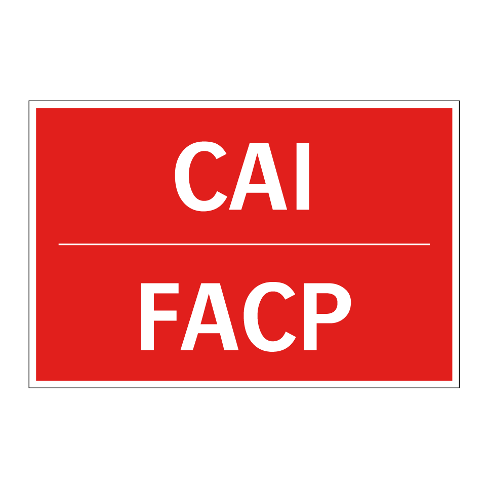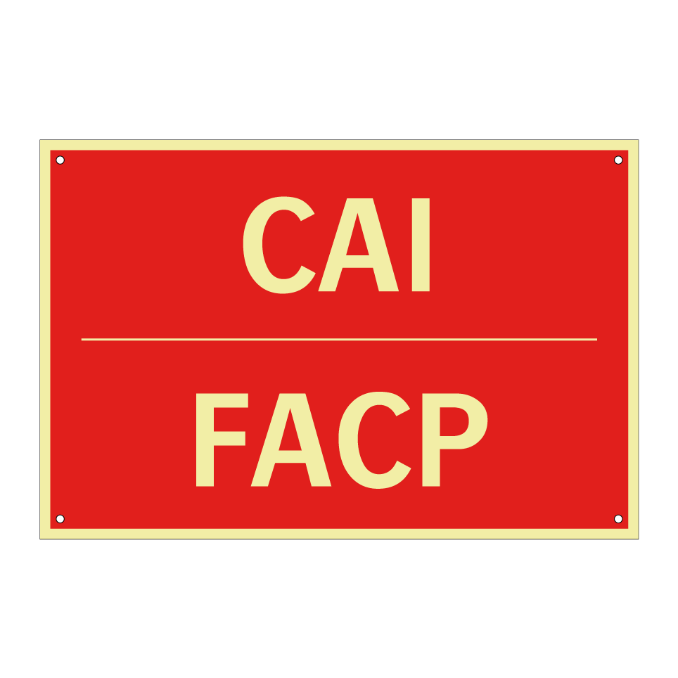 Panneau de signalisation incendie bilingue avec texte en français : "CAI", et en anglais : "FACP"