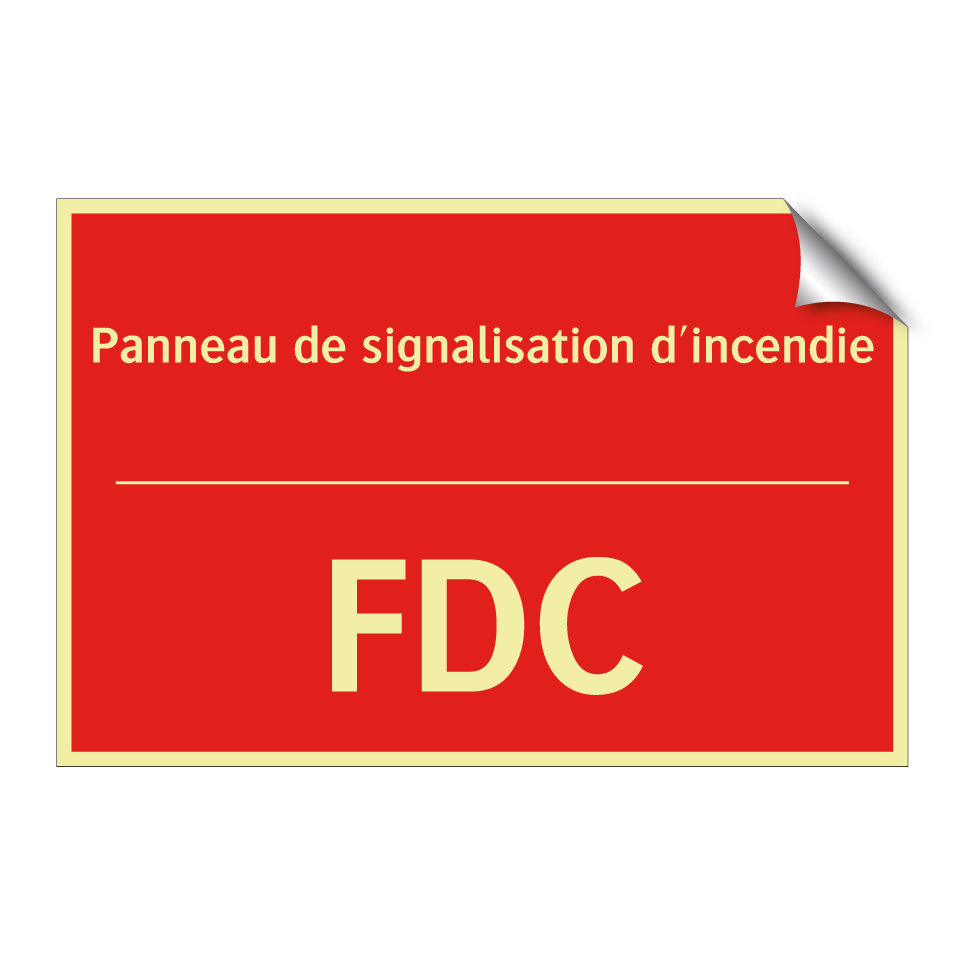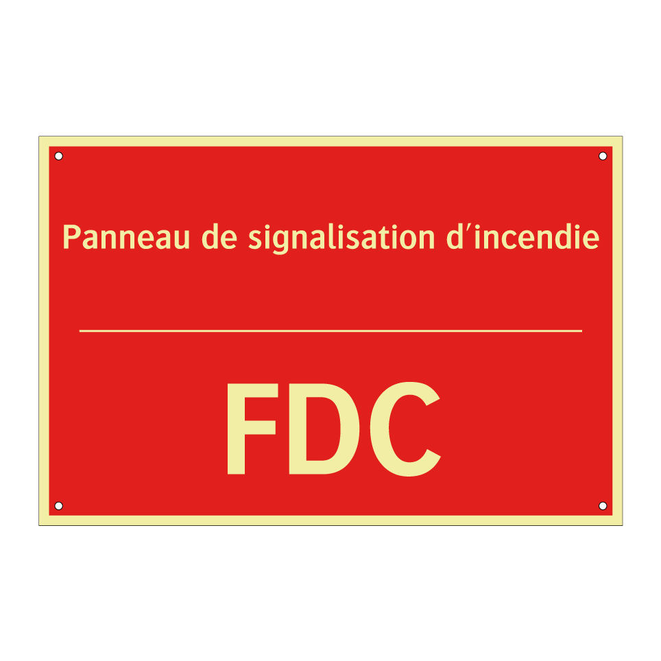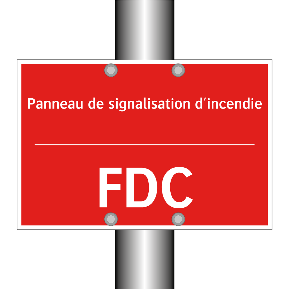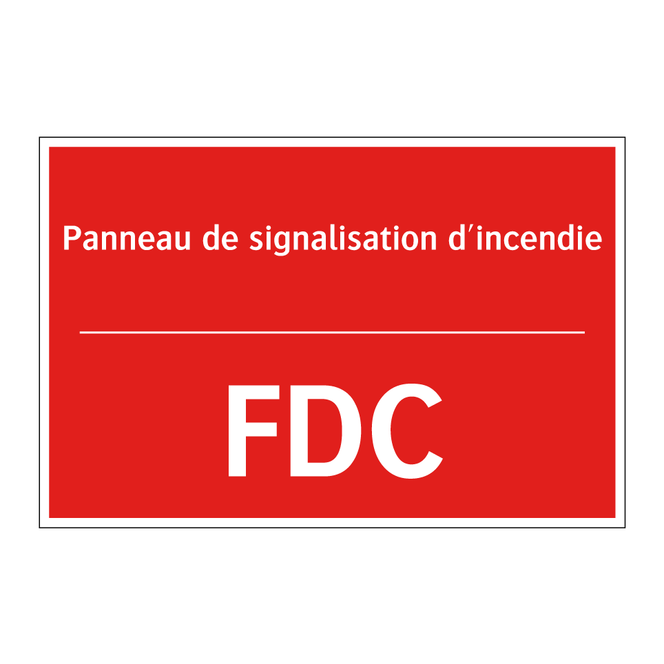 Panneau de signalisation incendie bilingue avec texte en français : "Panneau de signalisation d'incendie", et en anglais : "FDC"