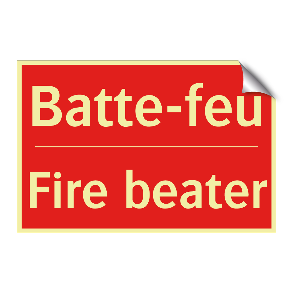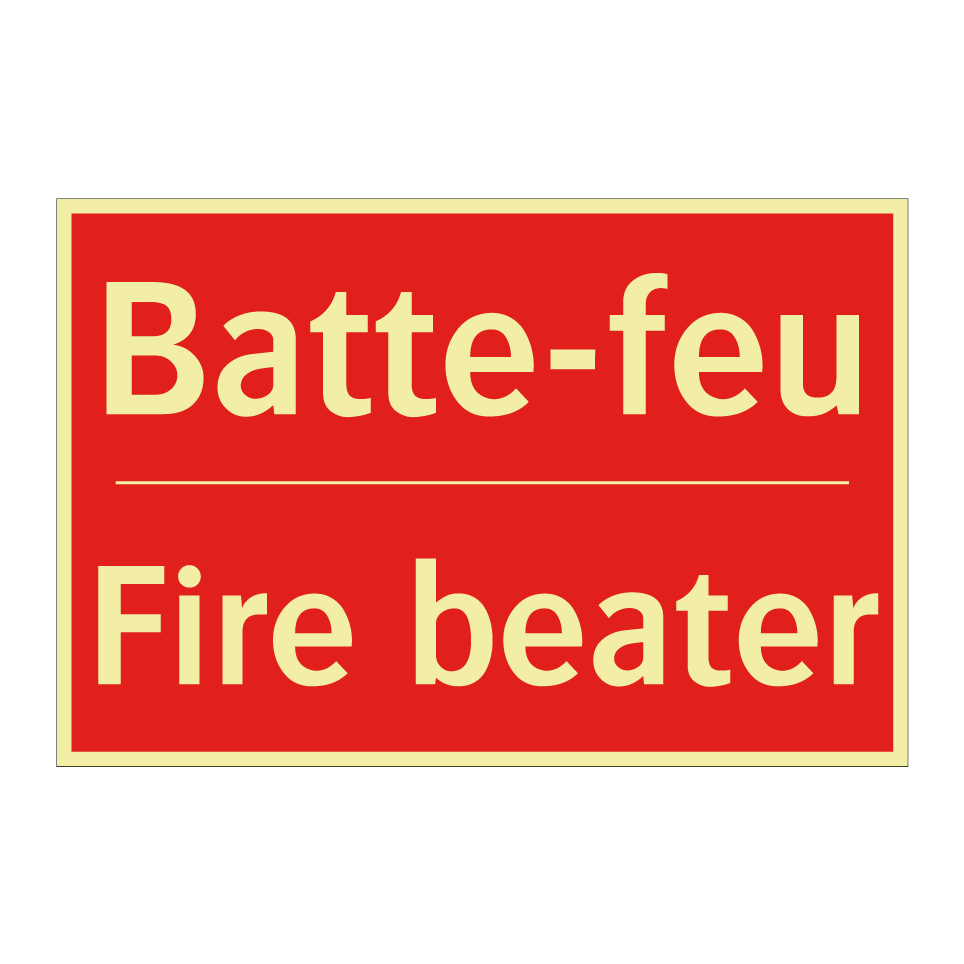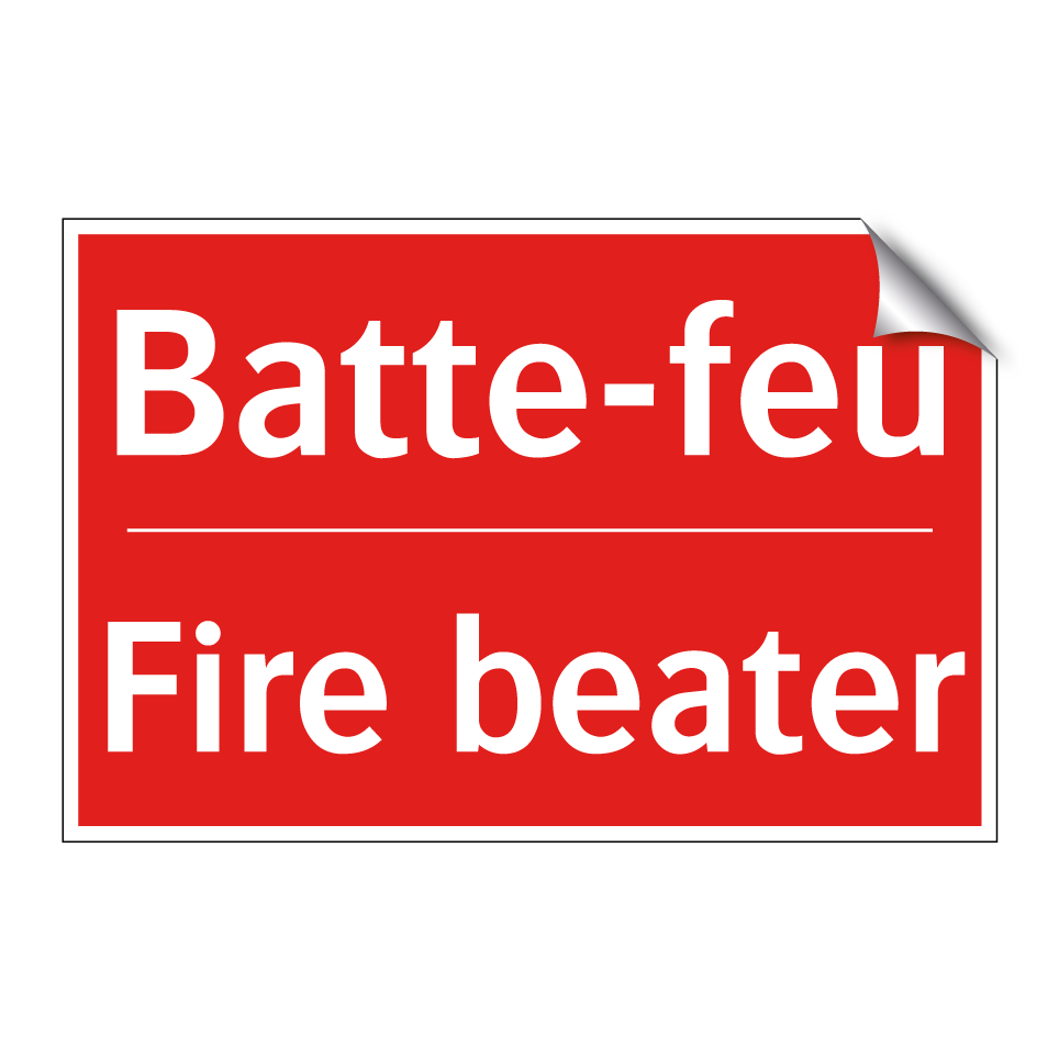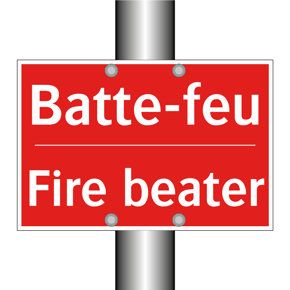 Panneau de signalisation incendie bilingue avec texte en français : "Batte-feu", et en anglais : "Fire beater"