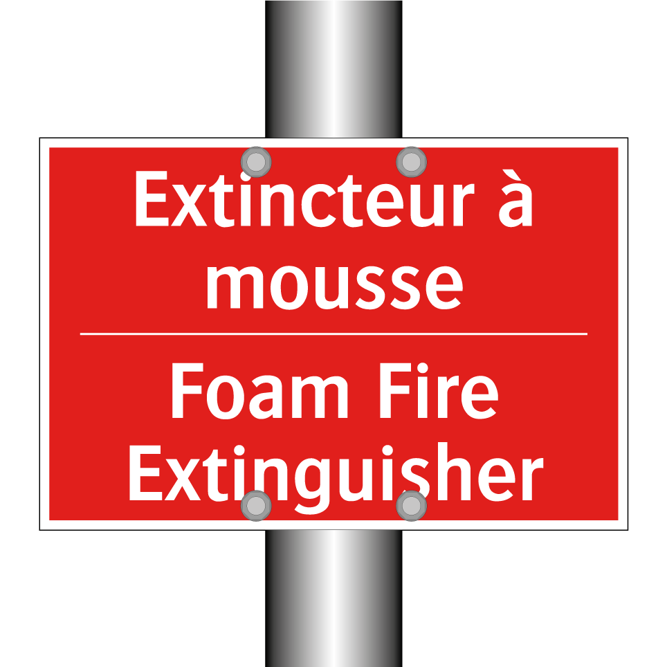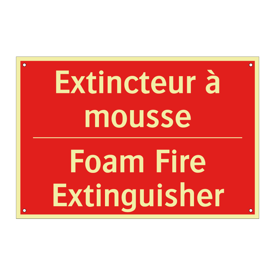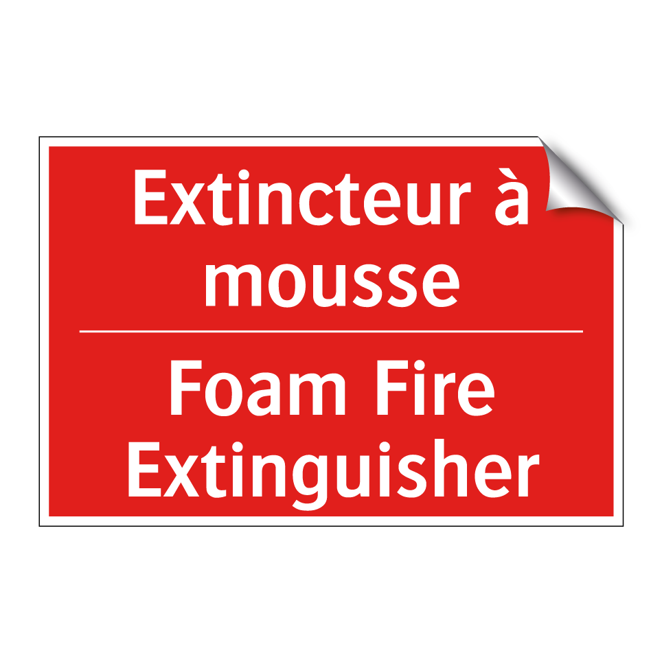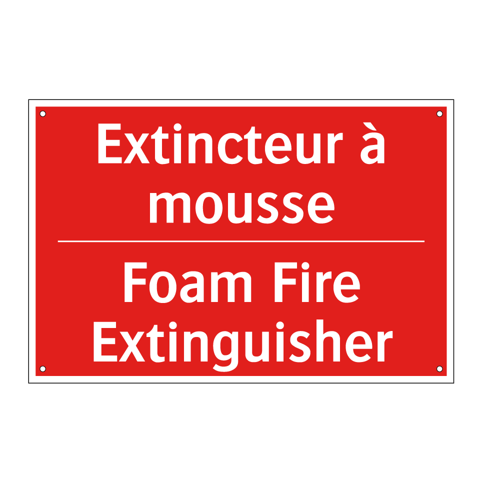 Panneau de signalisation incendie bilingue avec texte en français : "Extincteur à mousse", et en anglais : "Foam Fire Extinguisher"