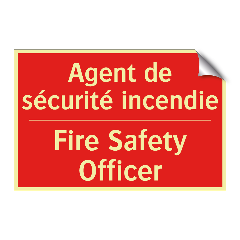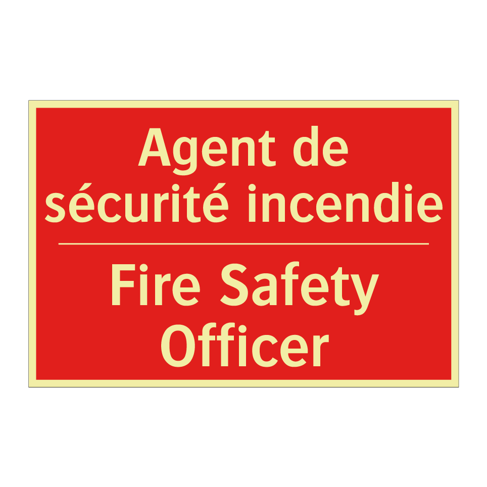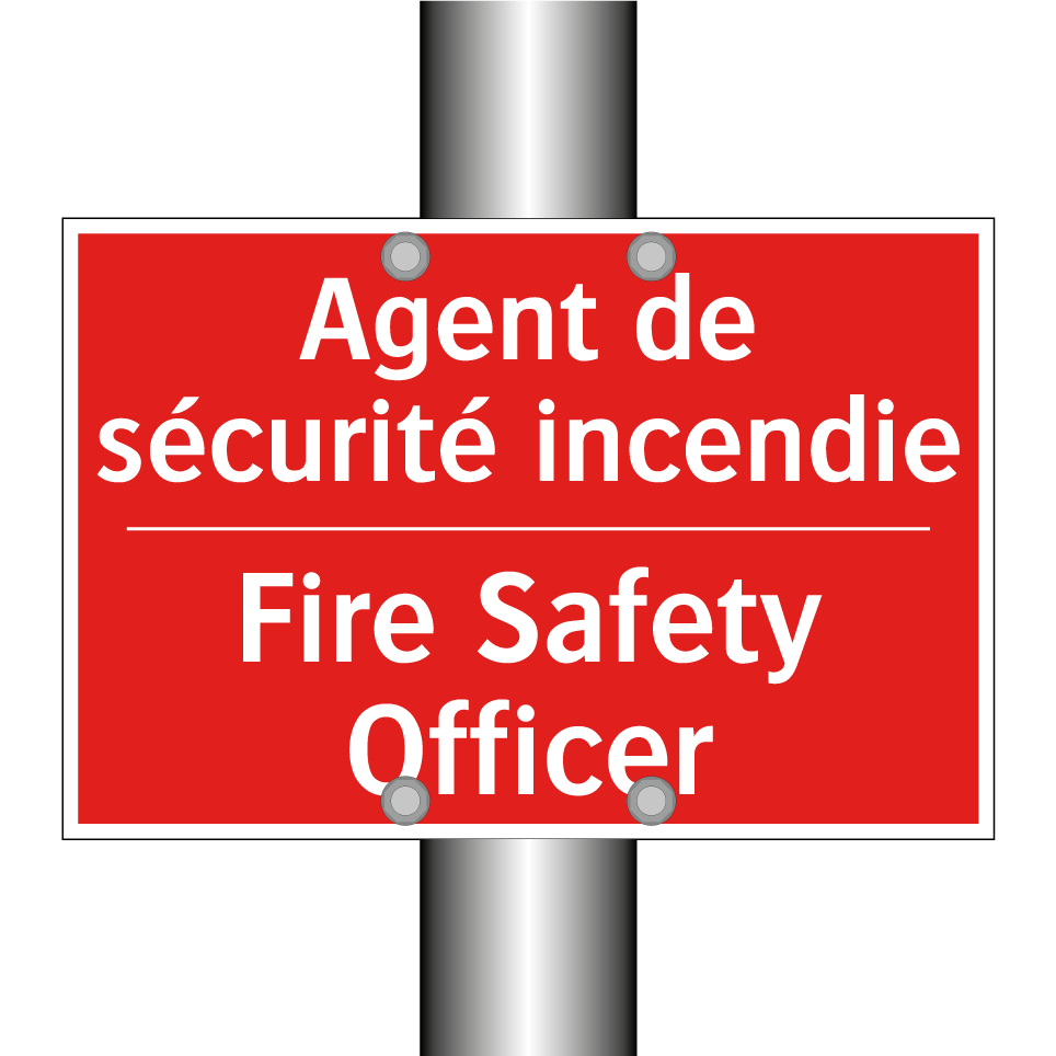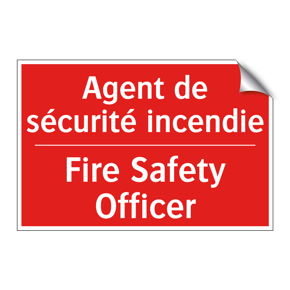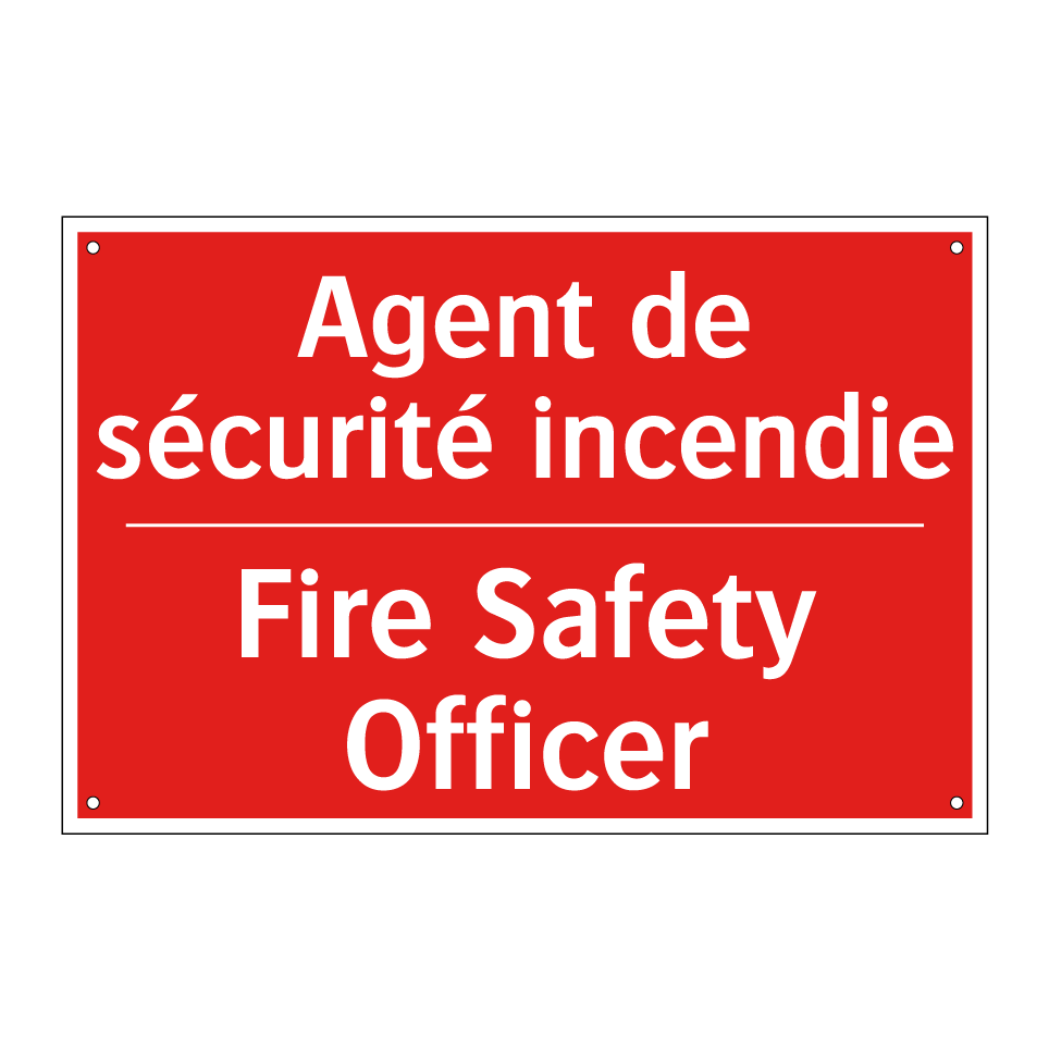 Panneau de signalisation incendie bilingue avec texte en français : "Agent de sécurité incendie", et en anglais : "Fire Safety Officer"