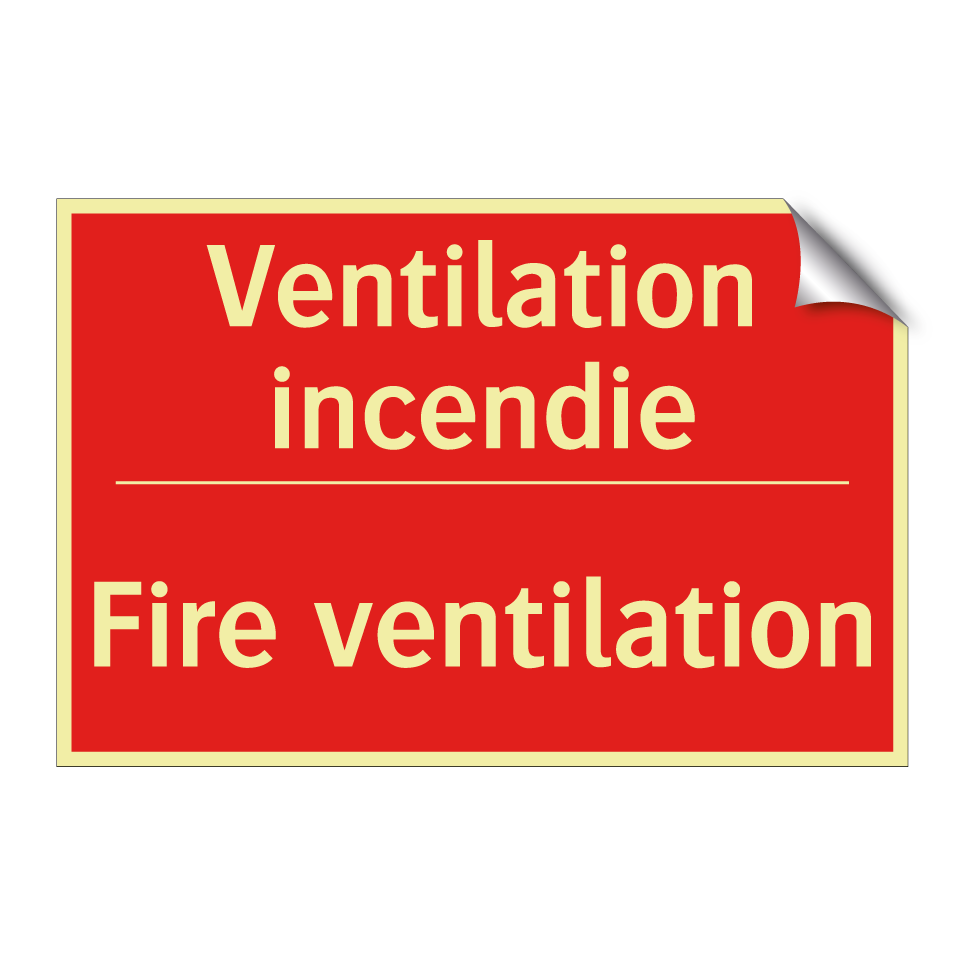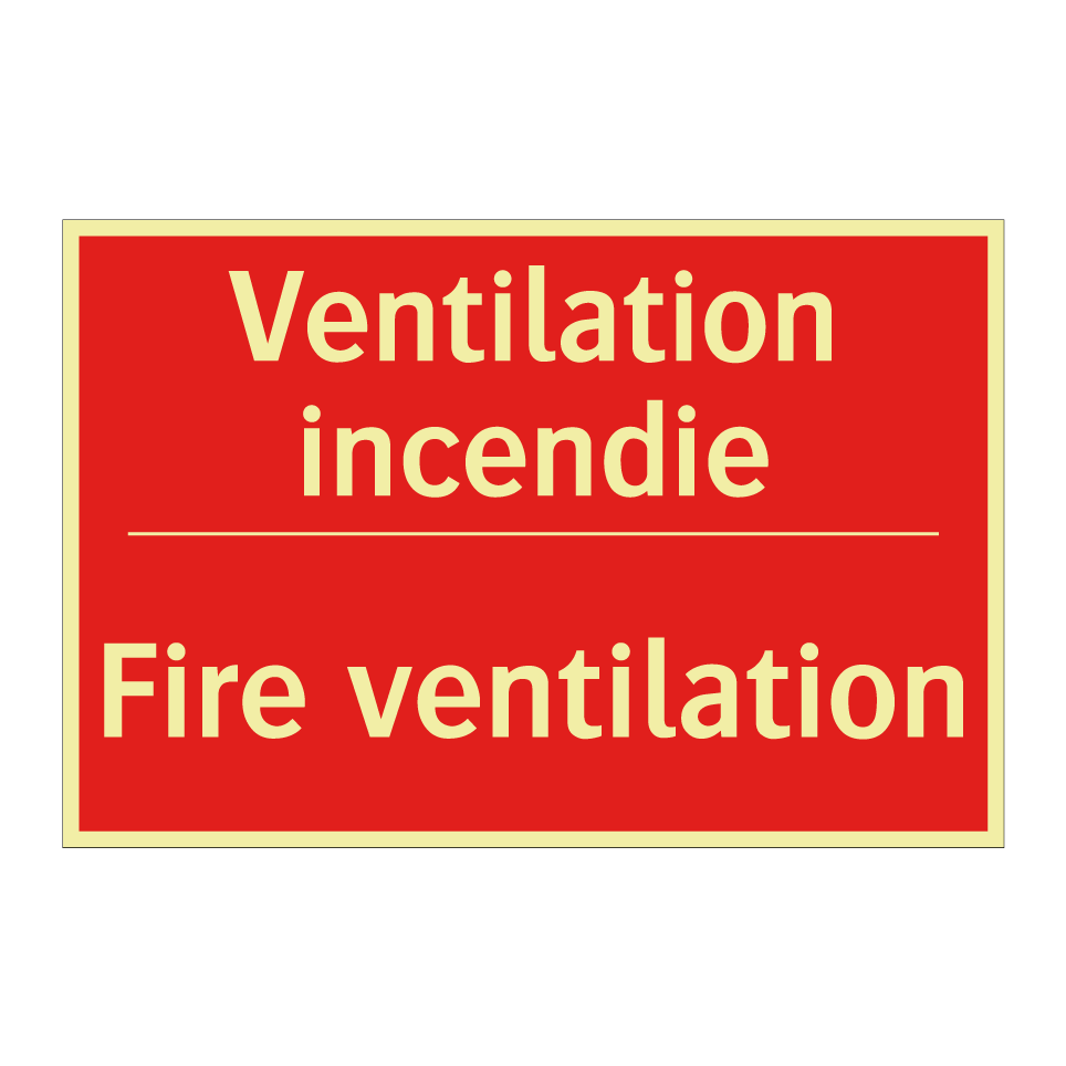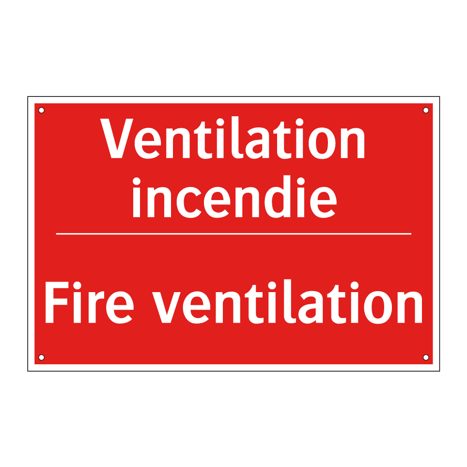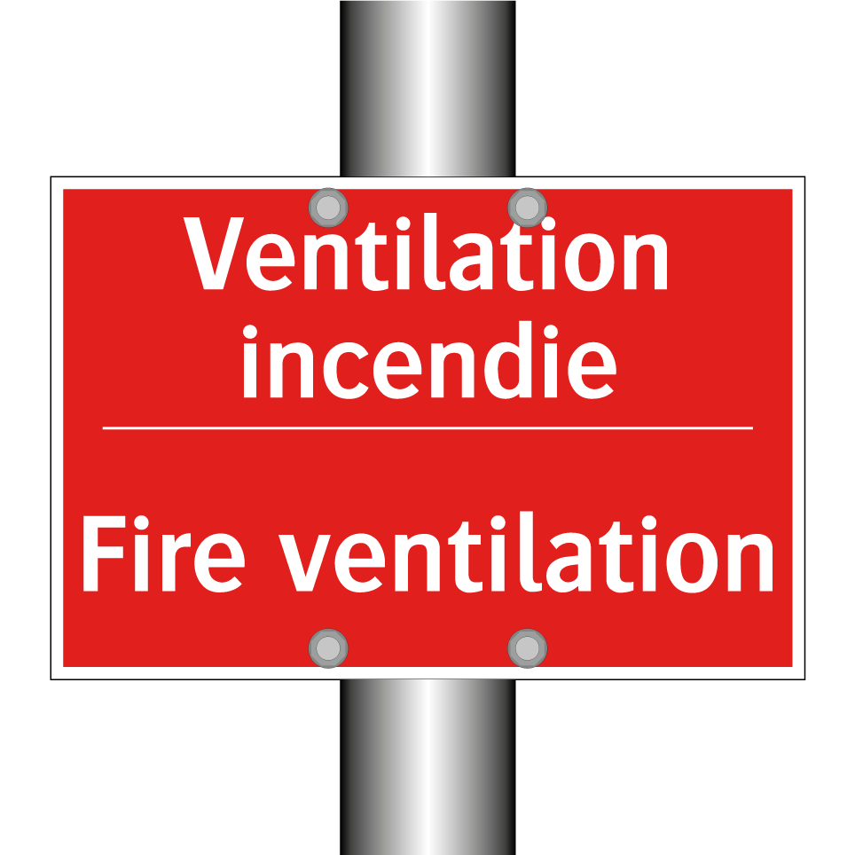 Panneau de signalisation incendie bilingue avec texte en français : "Ventilation incendie", et en anglais : "Fire ventilation"