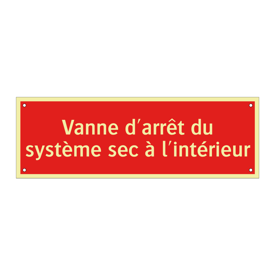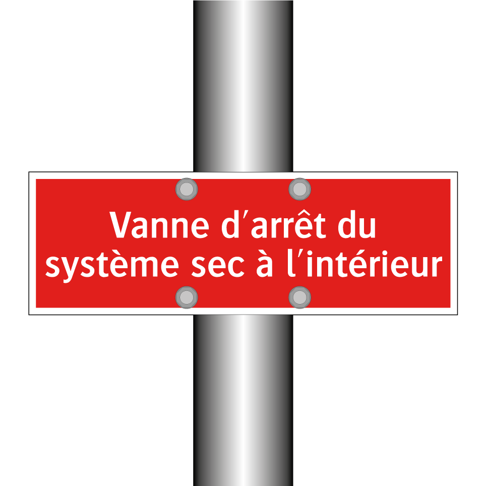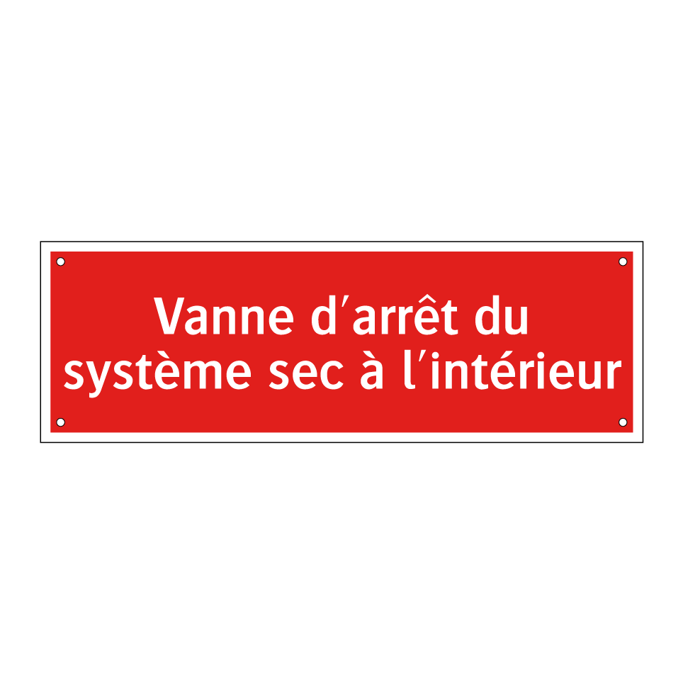 Panneau de signalisation incendie avec le texte Vanne d'arrêt du système sec à l'intérieur
