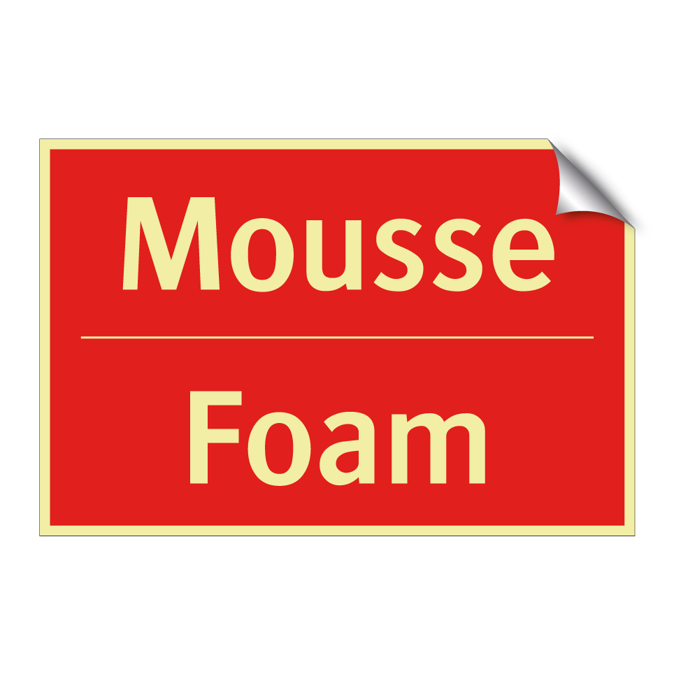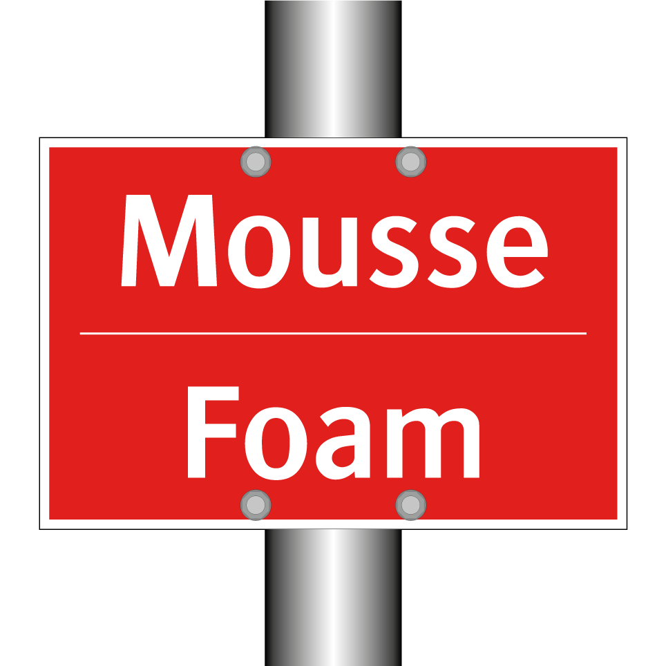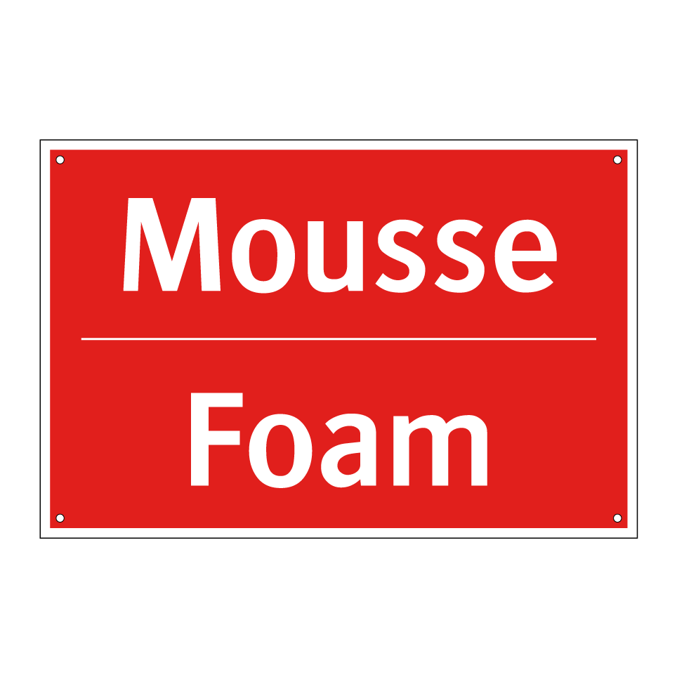 Panneau de signalisation incendie bilingue avec texte en français : "Mousse", et en anglais : "Foam"