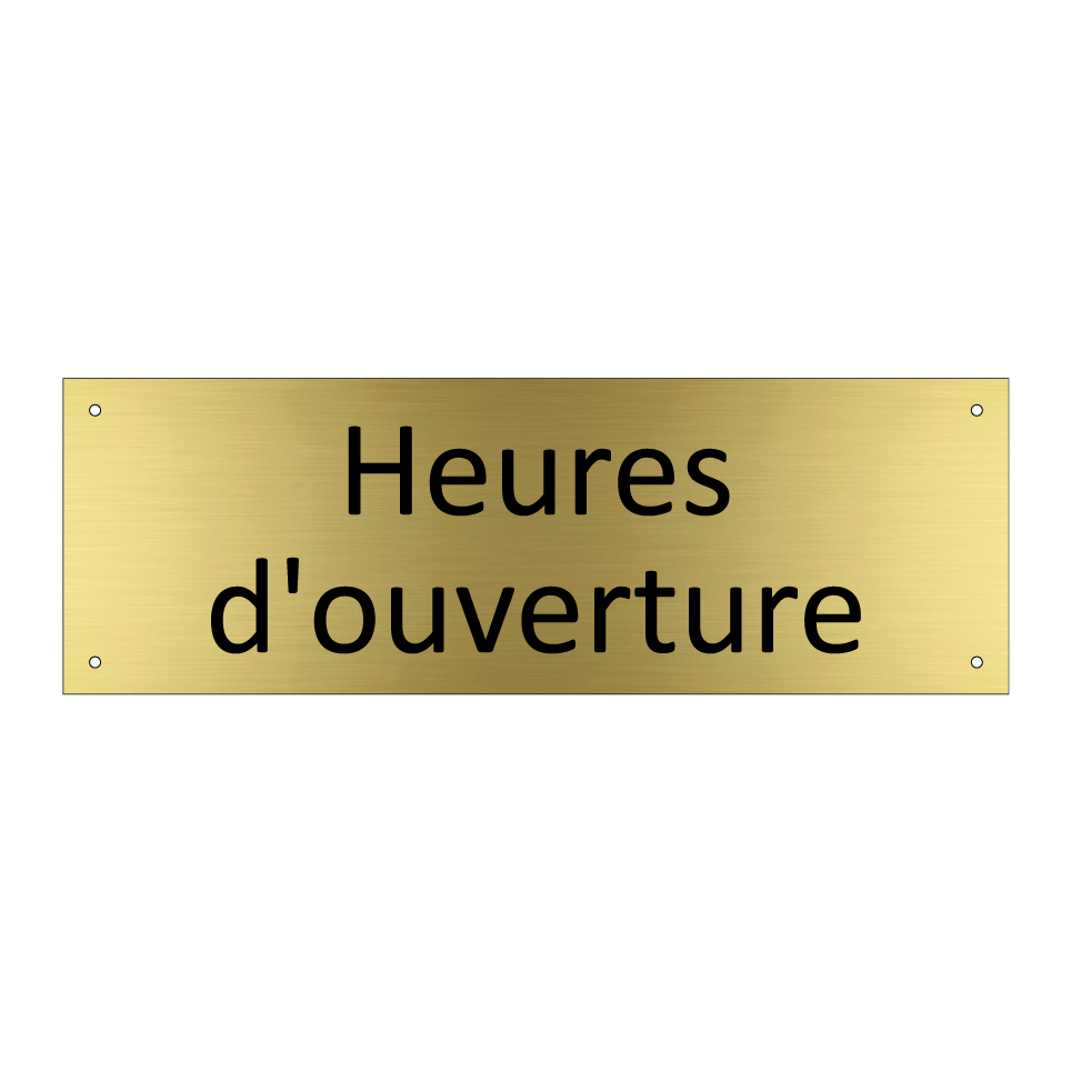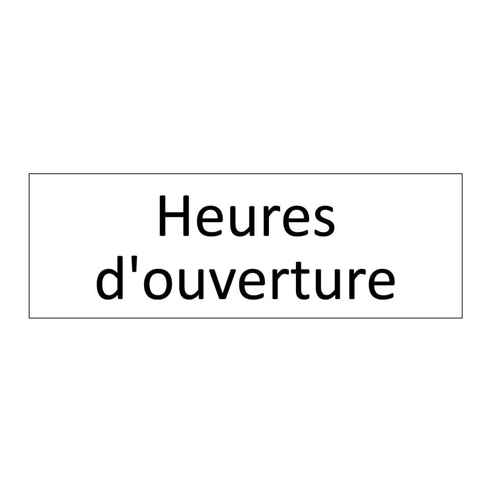 Panneau d'information avec le texte Heures d'ouverture.