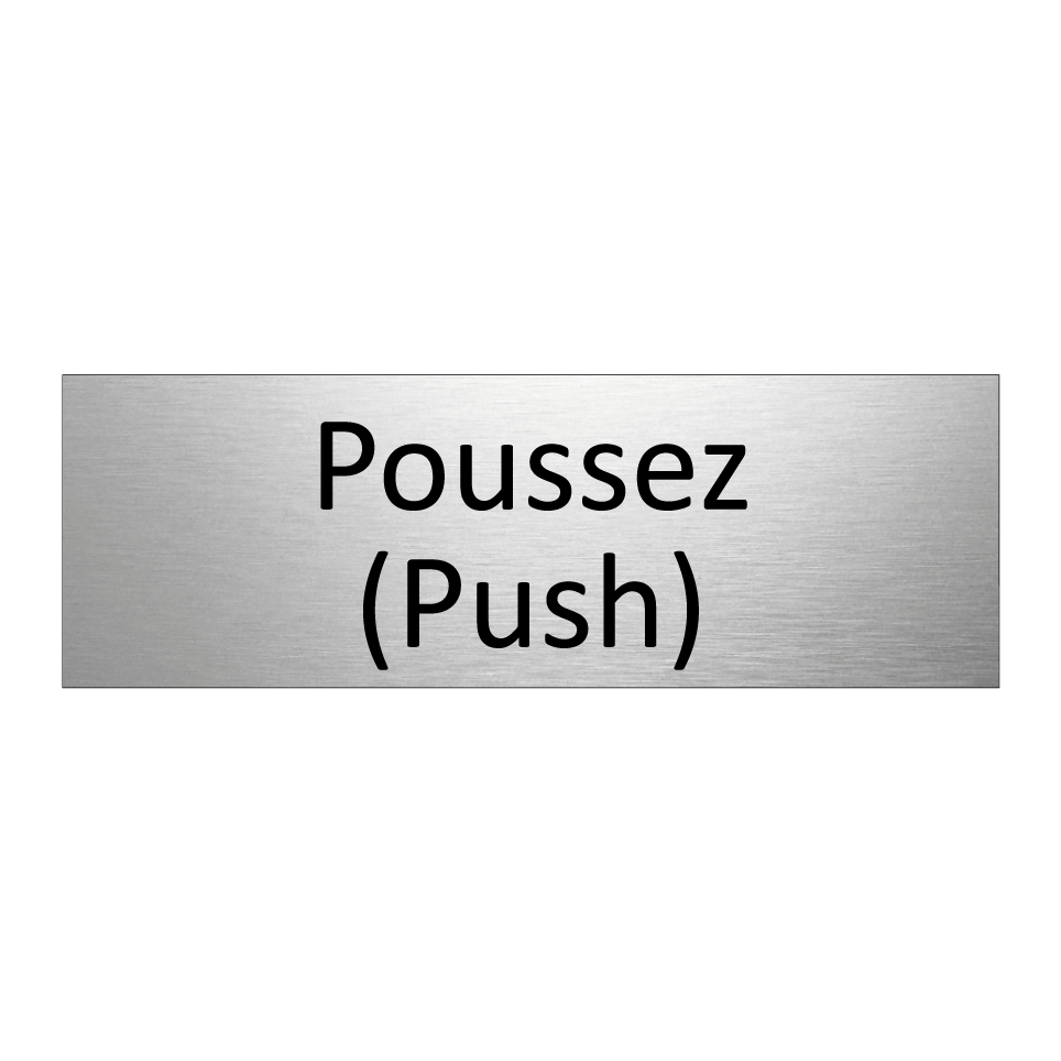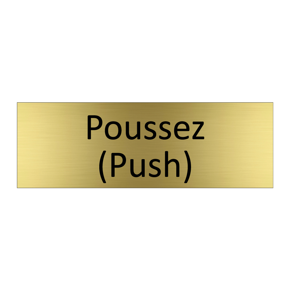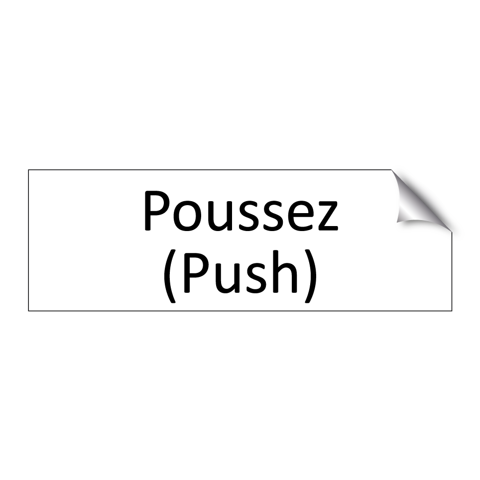 Panneau d'information avec le texte Poussez (LOCAL LANG).