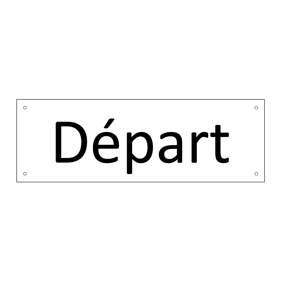 Cette enseigne est idéale pour guider les visiteurs dans les gares, les aéroports ou les stations de métro, indiquant clairement le point de départ. Elle peut être placée à l'entrée des quais ou des terminaux pour orienter efficacement les voyageurs. Utilisée dans des contextes variés, elle assure une navigation fluide et intuitive, facilitant le déplacement des passagers. Parfaite pour les espaces publics, elle contribue à une signalisation claire et précise, essentielle pour une gestion optimale des flux de personnes.