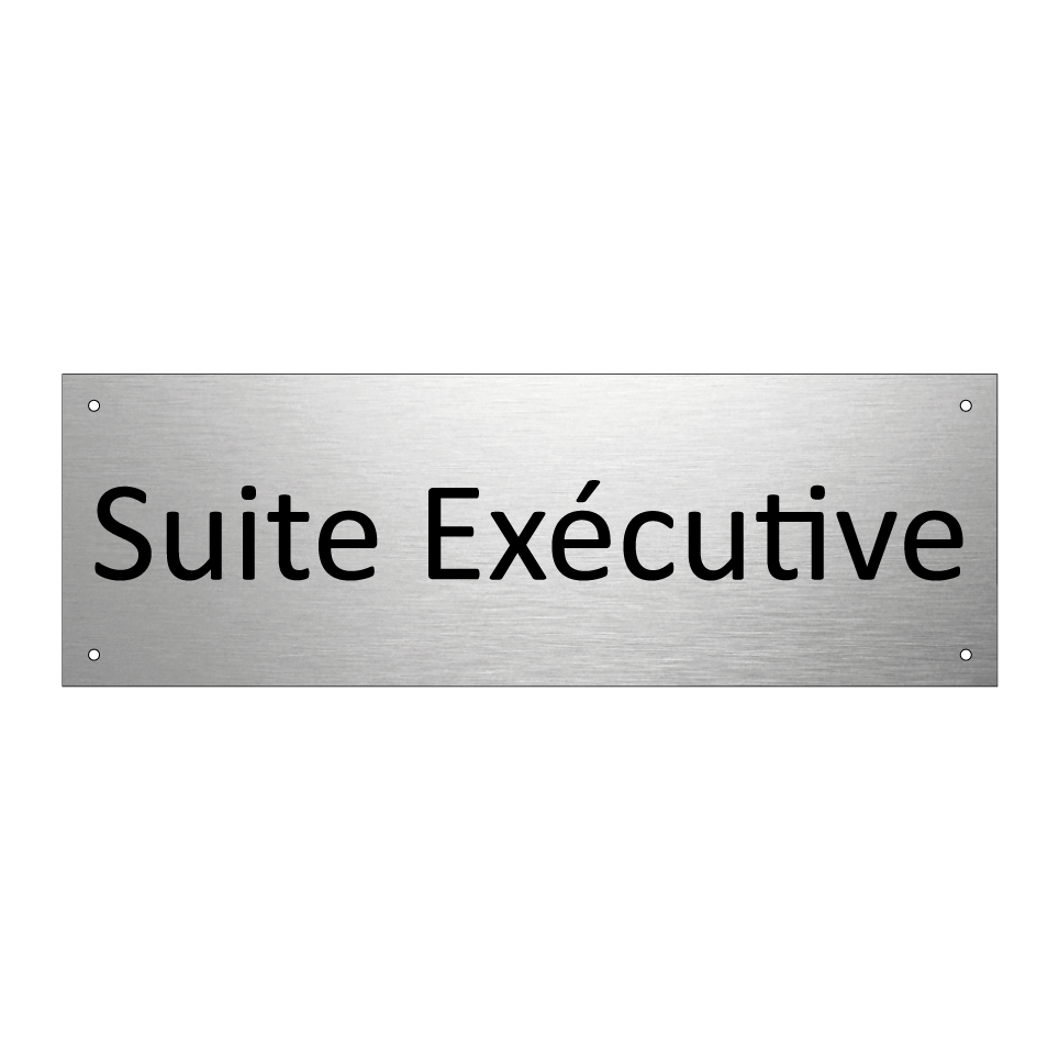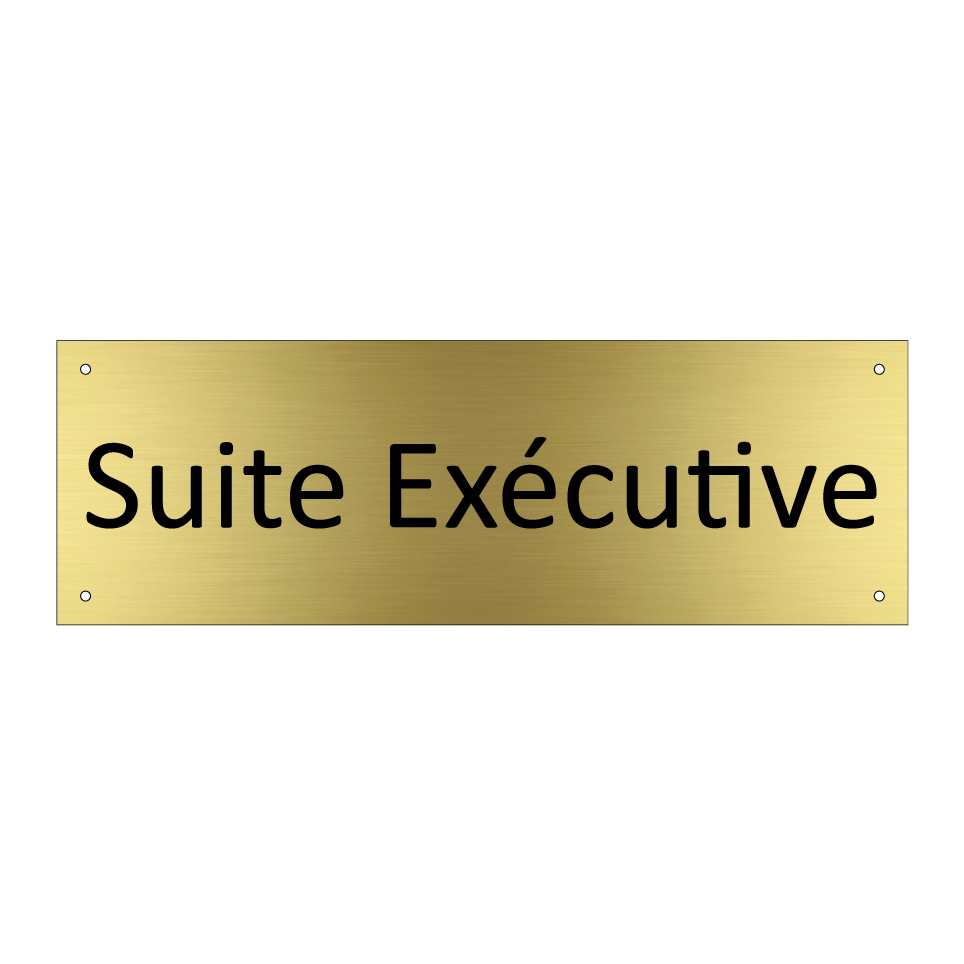 Cette enseigne élégante est idéale pour indiquer l'emplacement d'une suite exécutive dans un hôtel de luxe ou un centre d'affaires prestigieux. Elle guide vos visiteurs avec sophistication et clarté, ajoutant une touche de distinction à votre établissement. Placez-la à l'entrée de la suite pour une identification immédiate et professionnelle. Parfaite pour les environnements où le raffinement et l'exclusivité sont essentiels, cette signalétique assure une première impression mémorable et valorise votre espace.