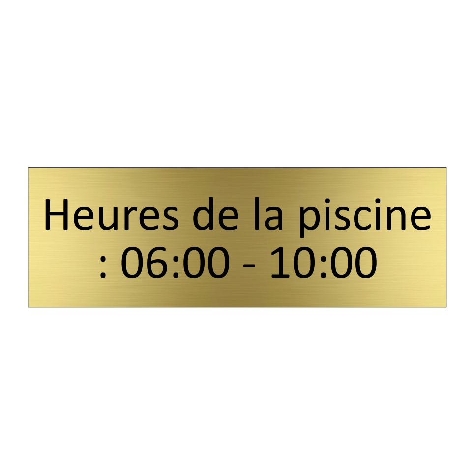 Panneau d'information avec le texte Heures de la piscine : 06:00 - 10:00.