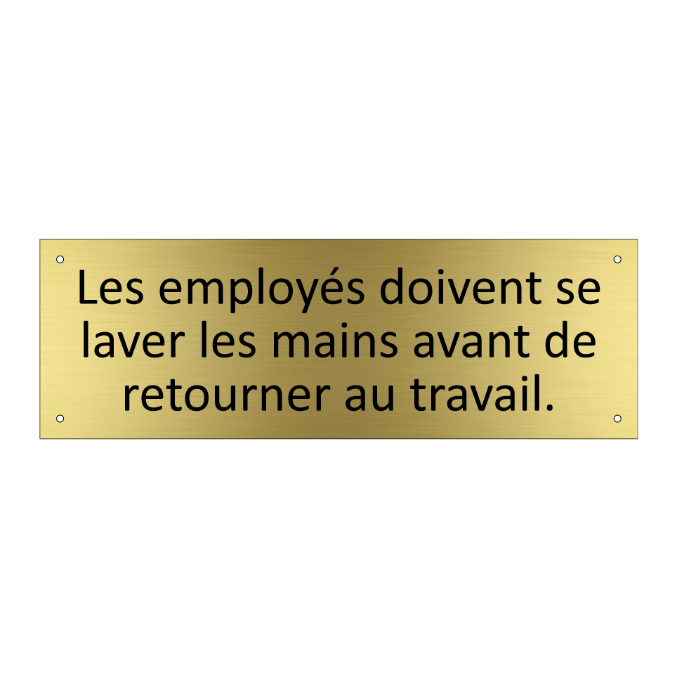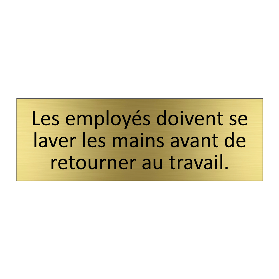 Panneau d'information avec le texte Les employés doivent se laver les mains avant de retourner au travail..