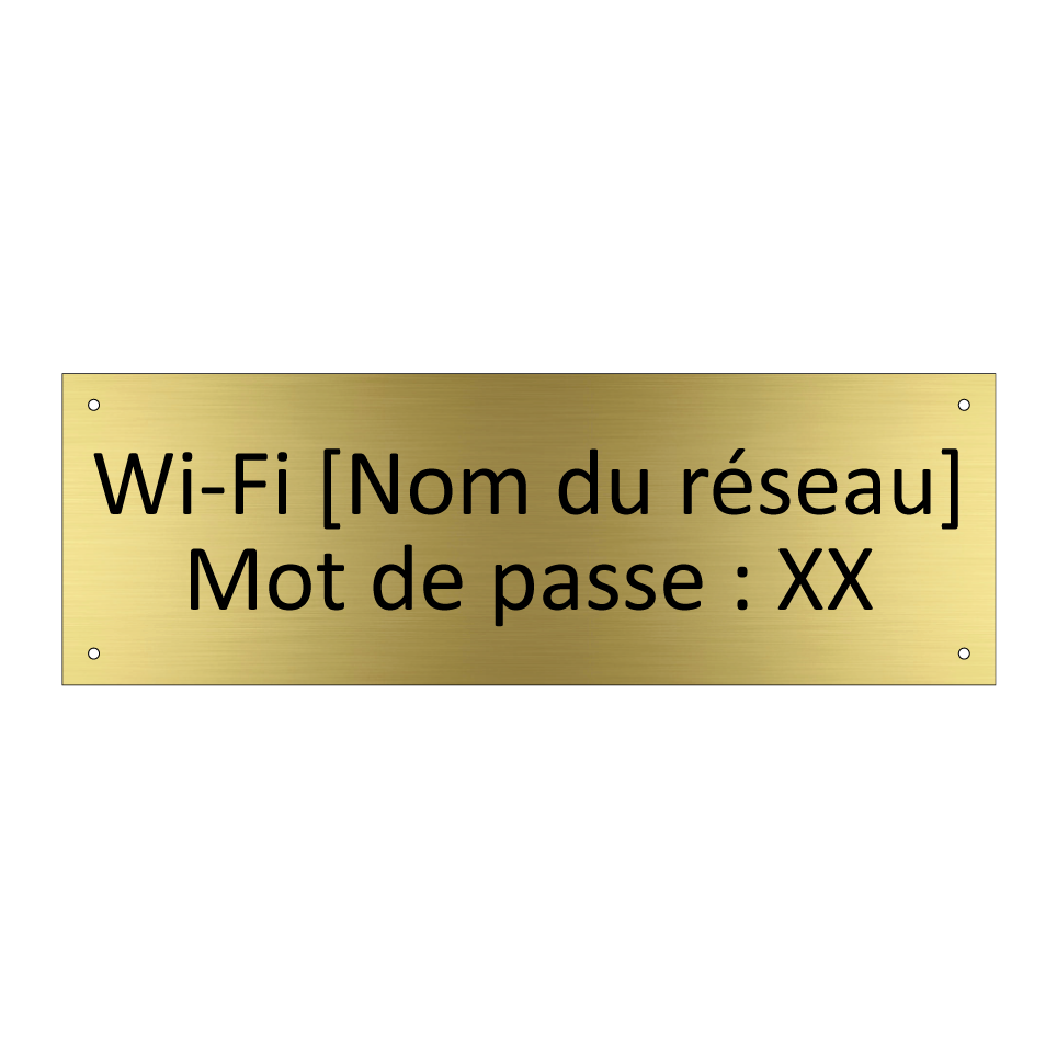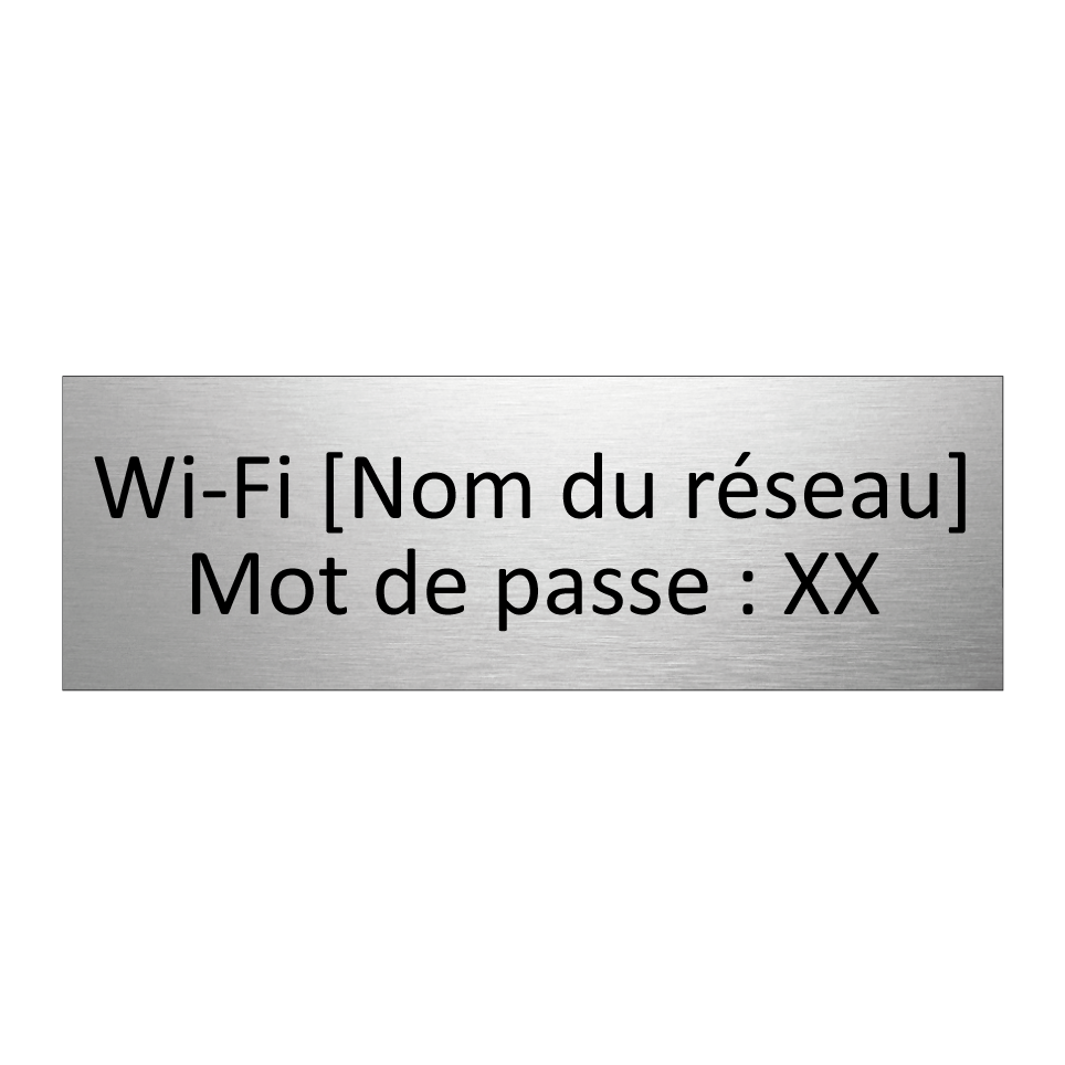 Cette pancarte est idéale pour les espaces où l'accès à Internet est essentiel, tels que les cafés, les restaurants, les bureaux ou même à la maison. Elle informe clairement vos clients ou invités du nom du réseau Wi-Fi et du mot de passe, facilitant ainsi leur connexion. Placez-la à l'entrée, près du comptoir ou dans les zones d'attente pour une visibilité optimale. En affichant ces informations de manière élégante et pratique, vous améliorez l'expérience utilisateur et favorisez une atmosphère accueillante et connectée.