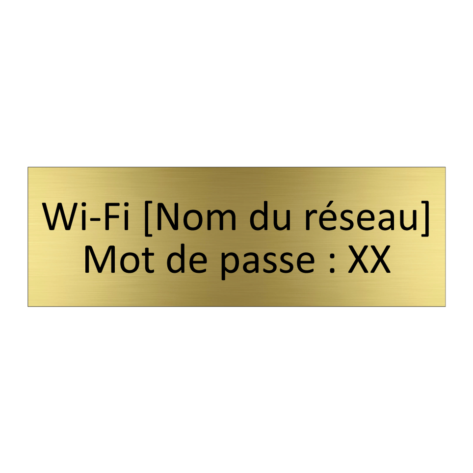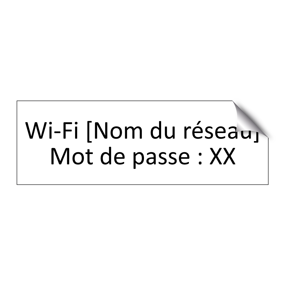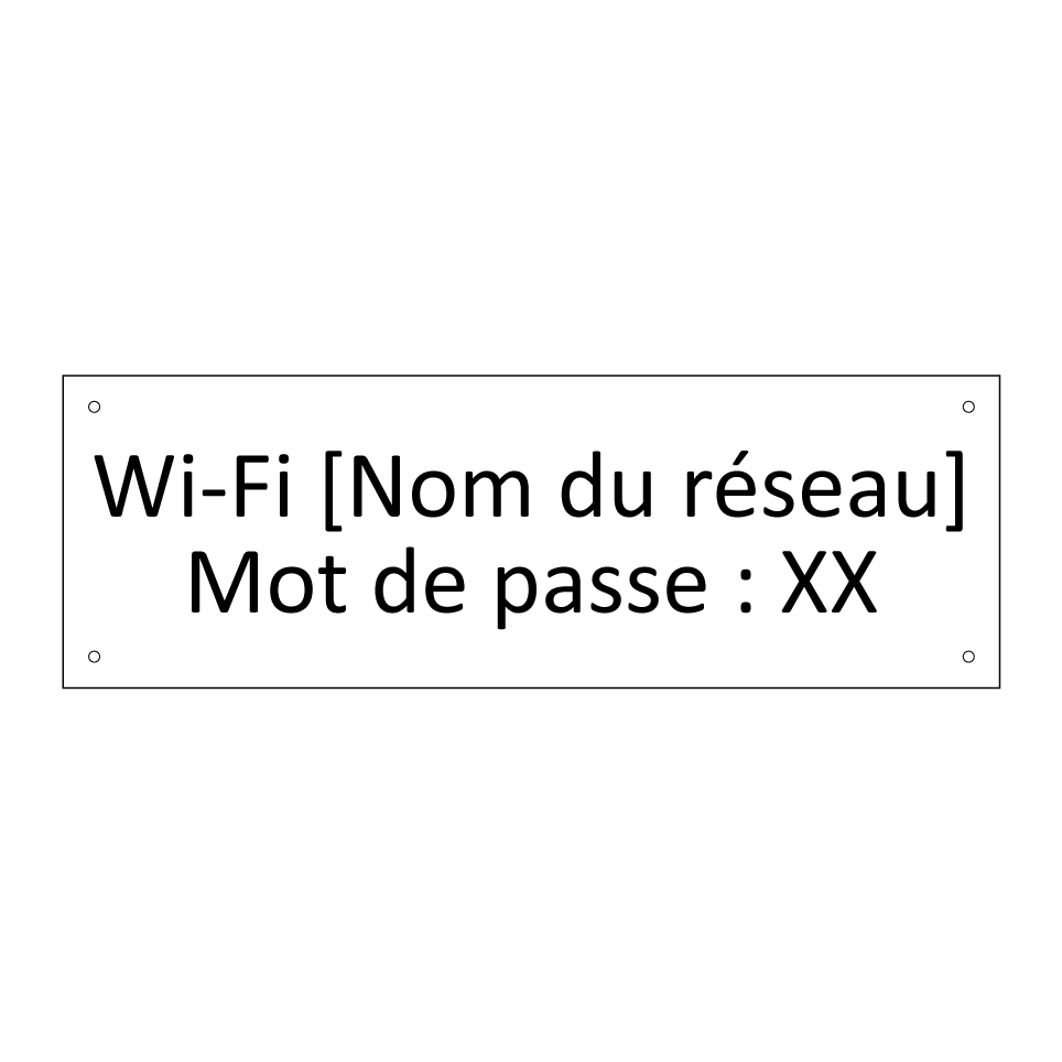 Panneau d'information avec le texte Wi-Fi [Nom du réseau] Mot de passe : XX.