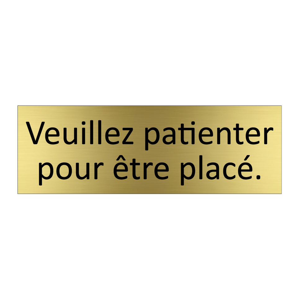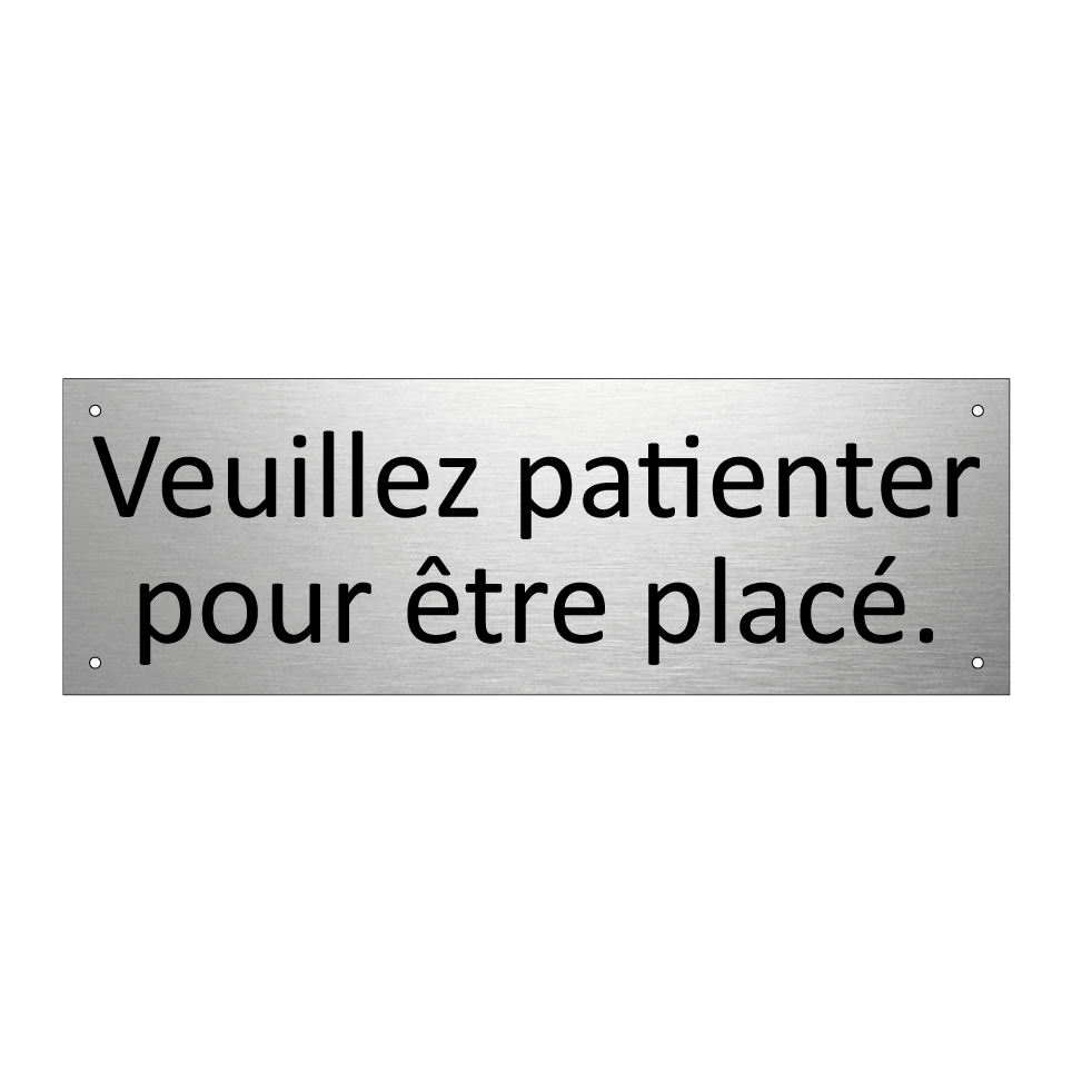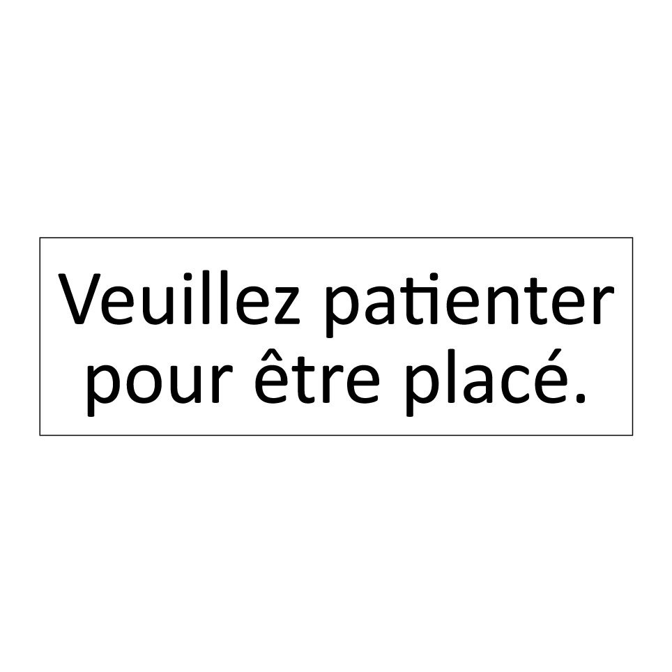 Panneau d'information avec le texte Veuillez patienter pour être placé..