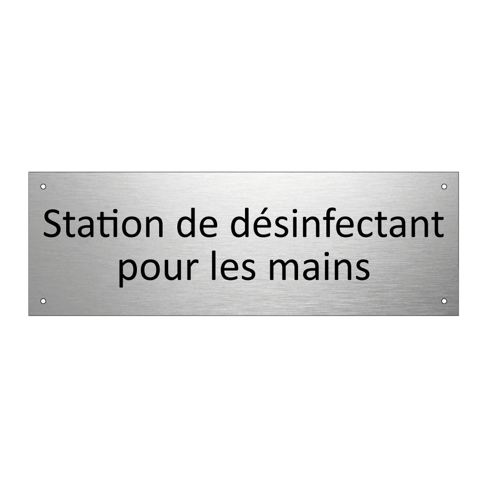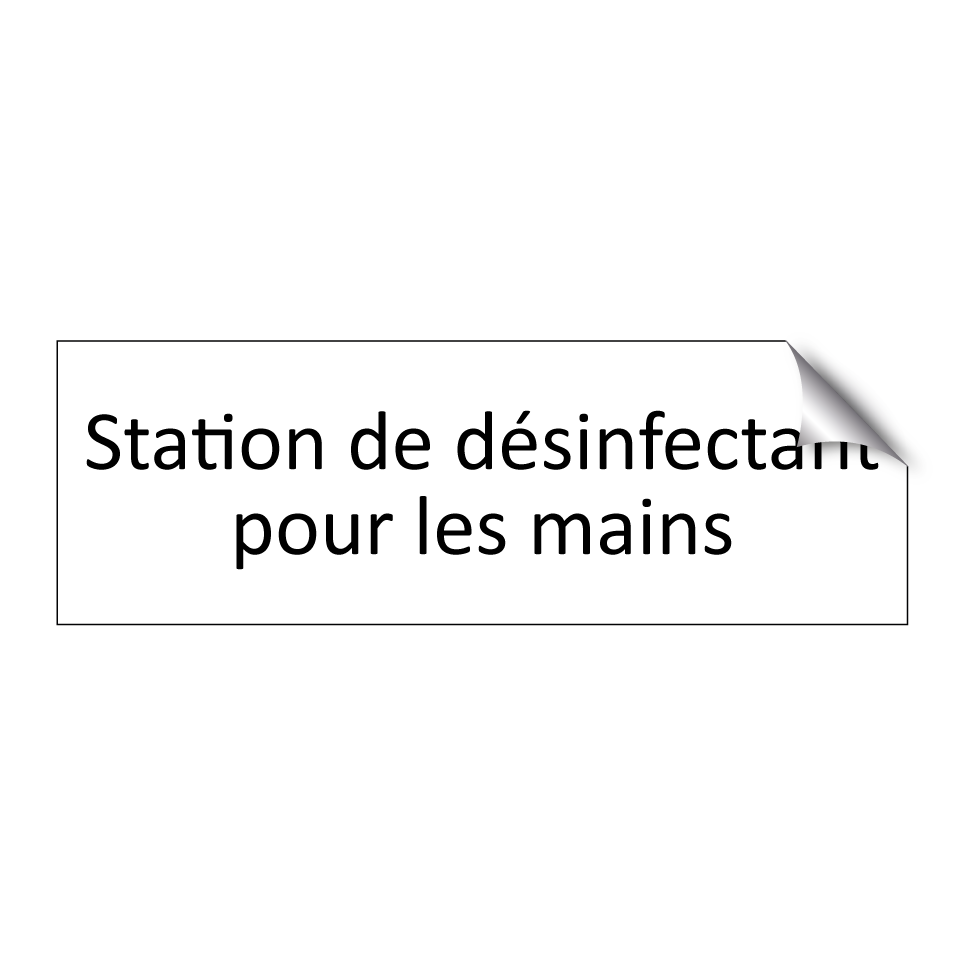 Panneau d'information avec le texte Station de désinfectant pour les mains.