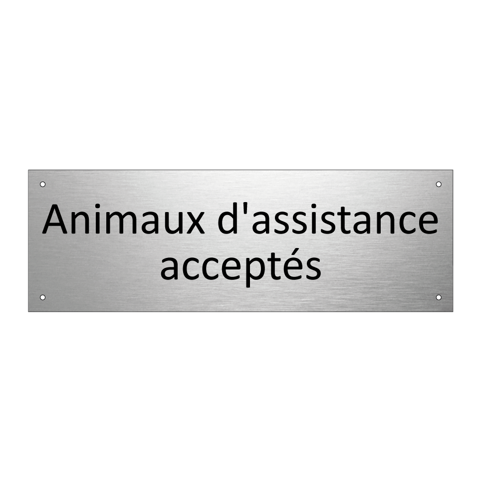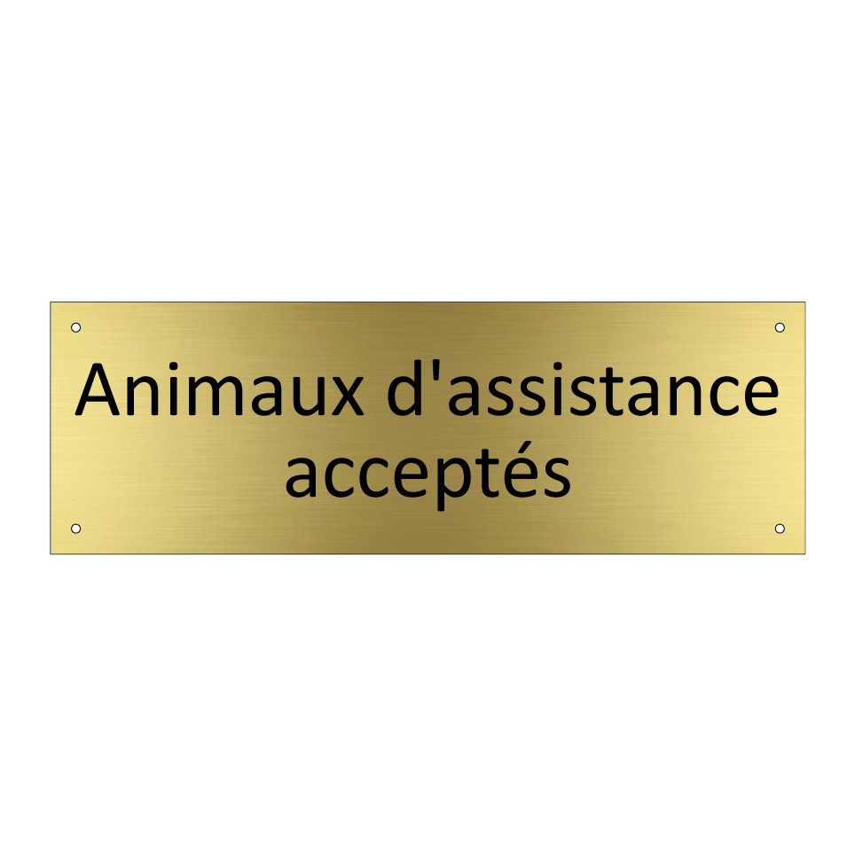 Panneau d'information avec le texte Animaux d'assistance acceptés.