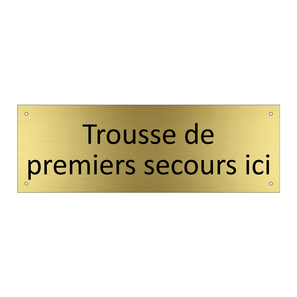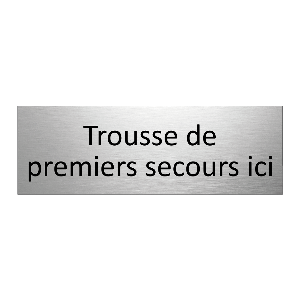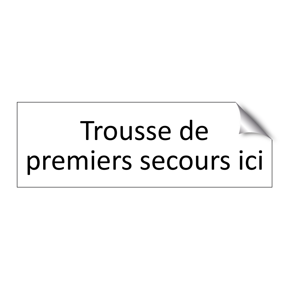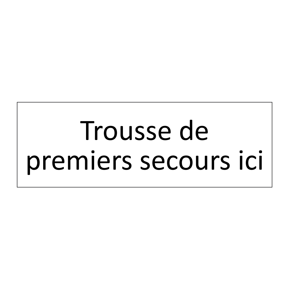 Panneau d'information avec le texte Trousse de premiers secours ici.