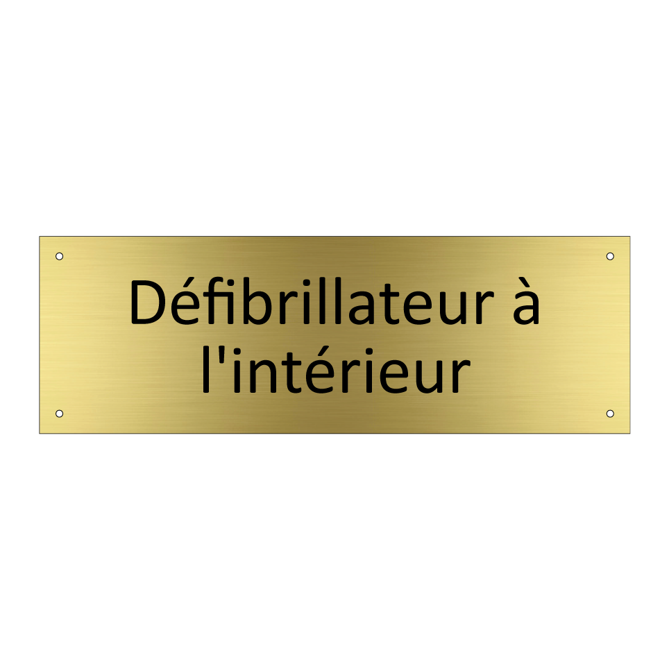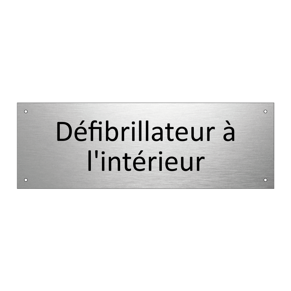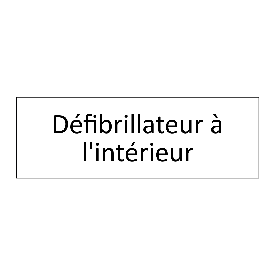 Panneau d'information avec le texte Défibrillateur à l'intérieur.