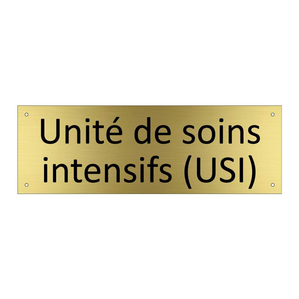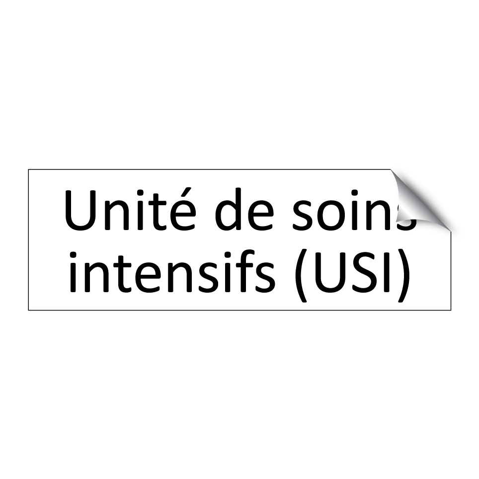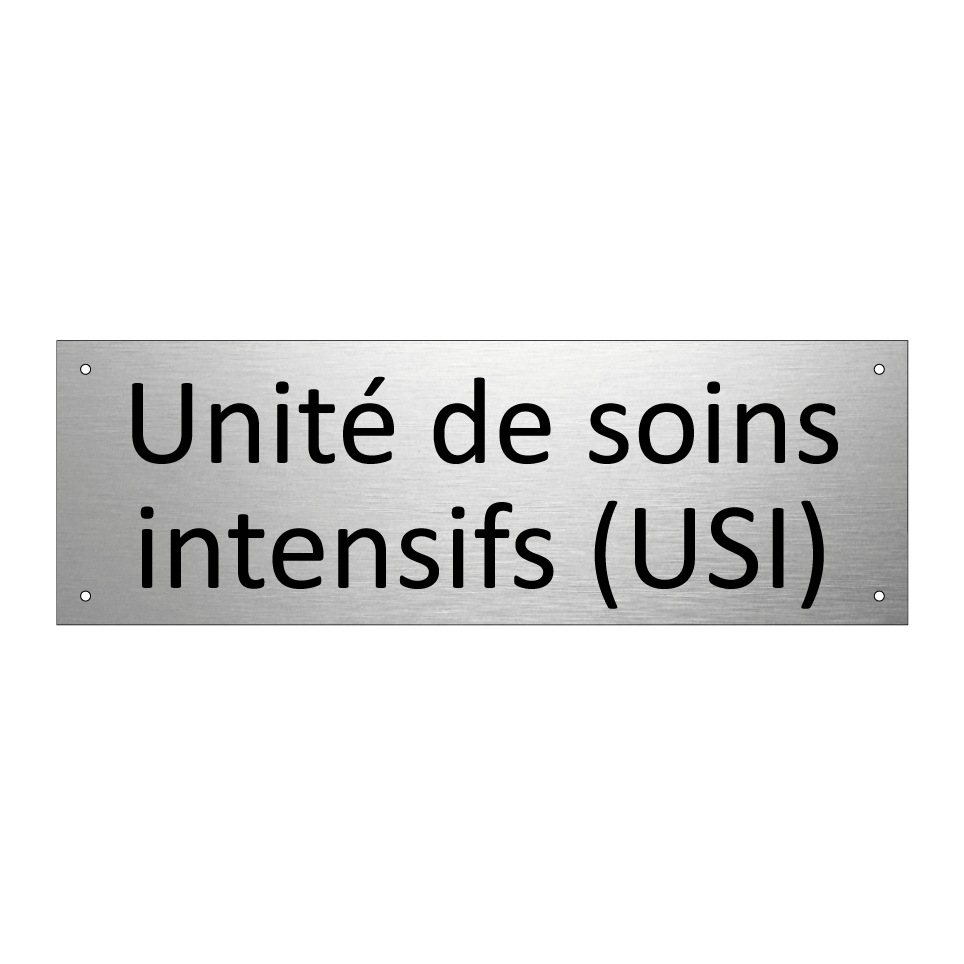 Panneau d'information avec le texte Unité de soins intensifs (USI).