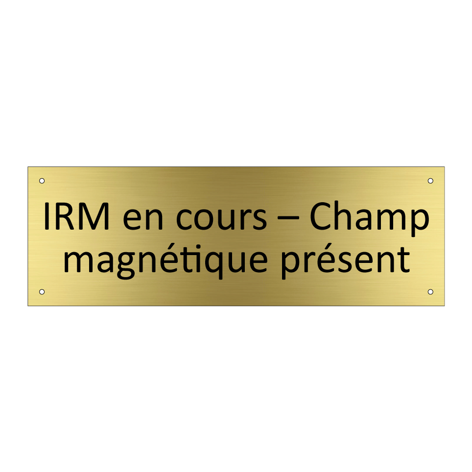 Panneau d'information avec le texte IRM en cours – Champ magnétique présent.