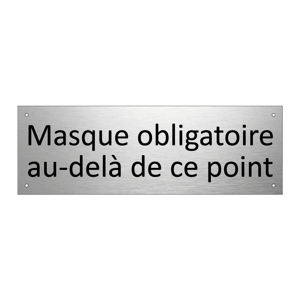 Panneau d'information avec le texte Masque obligatoire au-delà de ce point.